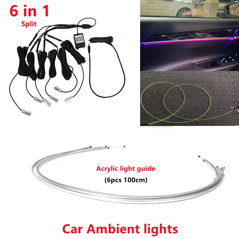 Светодиодная RGB лента 6 в 1 для интерьера автомобиля, акриловая во...