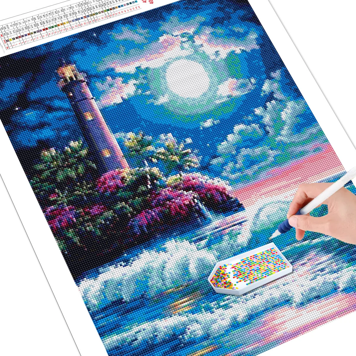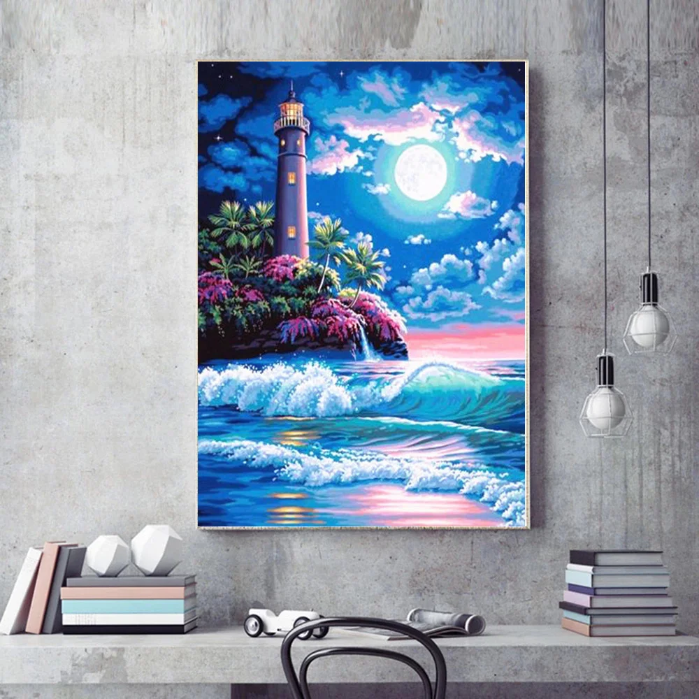 Алмазная картина Название: AZQSD Алмазная картина Маяк 5D полный квадрат/круглая дрель Алмазная вышивка пейзаж Стразы картинки Декорации для дома