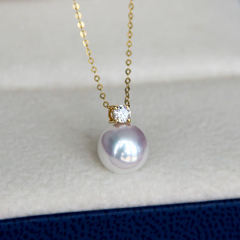 Ожерелье с жемчужным кулоном из 18-каратного золота, цепочка с подвеской из натурального жемчуга Akoya AU750, ювелирные изделия из желтого золота, хороший подарок