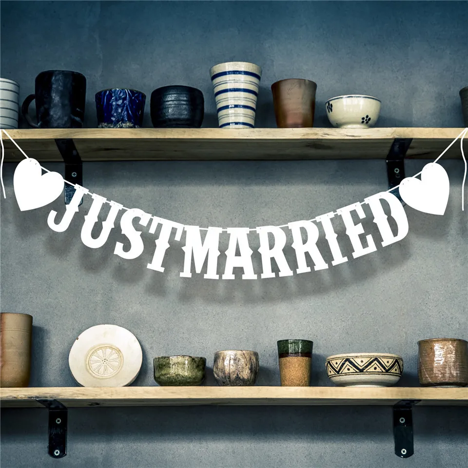 Винтажный бумажный баннер, белая свадебная гирлянда, флажки, романт...