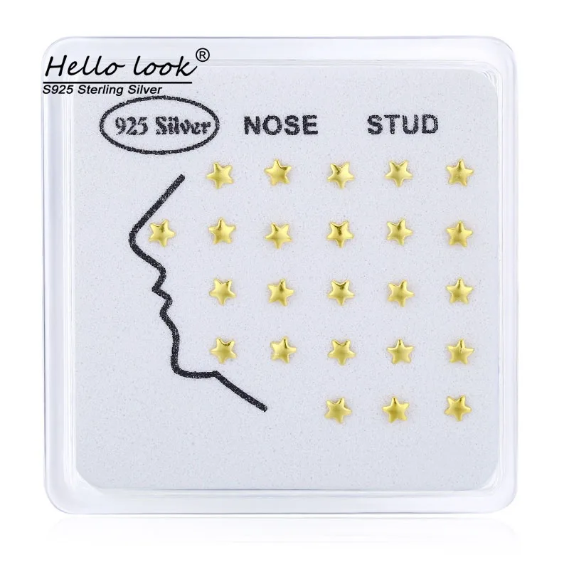 Heloluk 24 шт модные шпильки для носа женские золотые звезды Нос пирсинг мини 925 стерлингового серебра ювелирные изделия не содержит свинец и никель подарки
