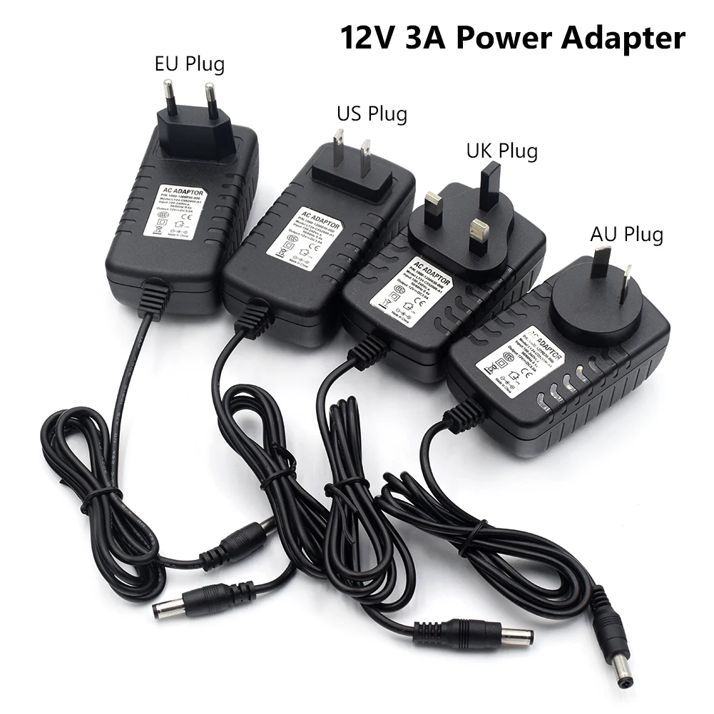 Адаптер питания 100-240 В переменного тока в постоянный ток 3 А для светодиодной ленты 36 Вт постоянный ток 12 В трансформатор напряжения с вилкой для ЕС США Великобритании Австралии Светодиодный драйвер питания