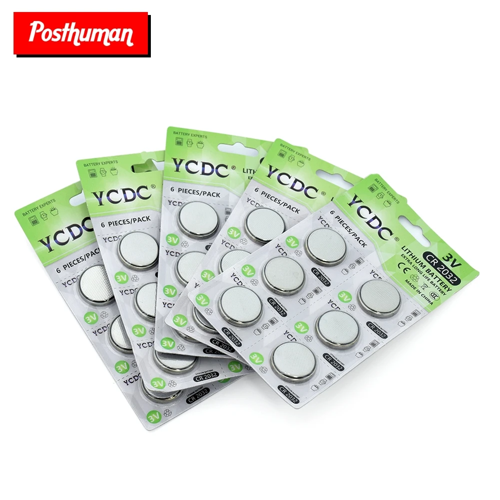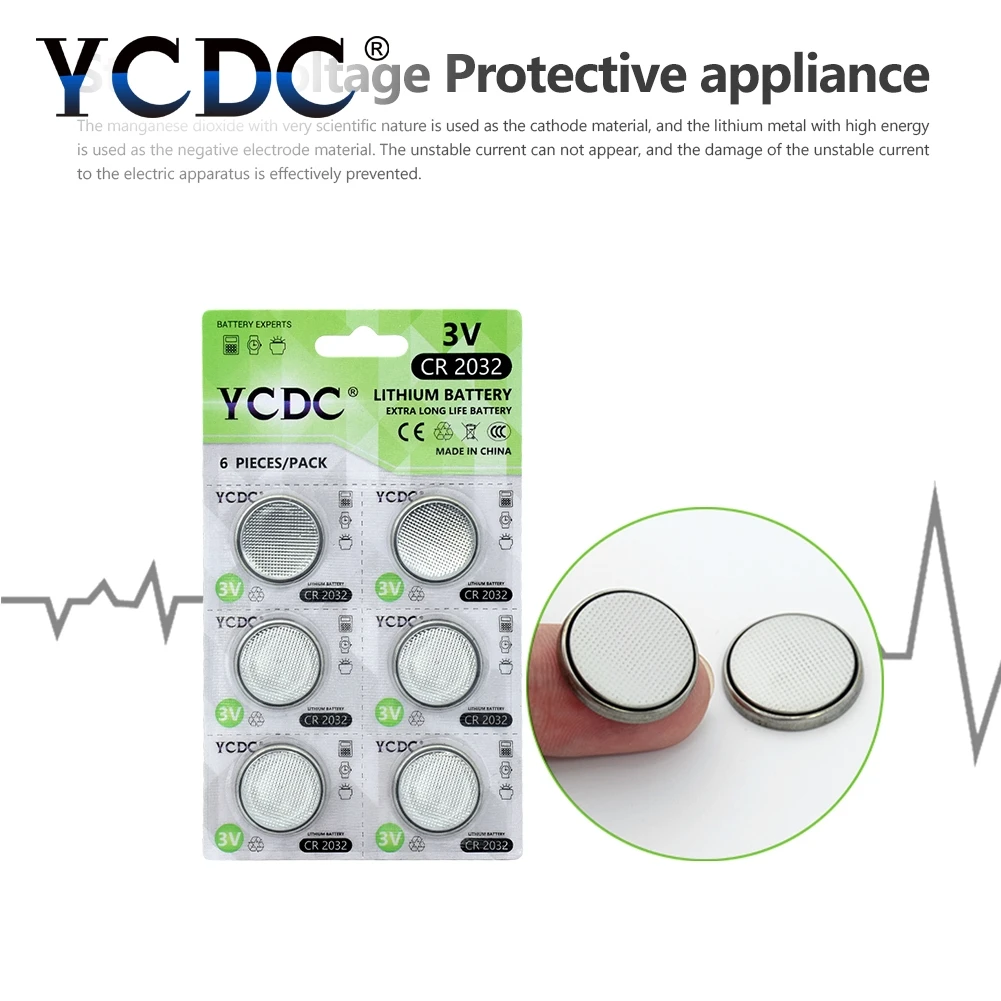 YCDC 6 шт. 36 шт. оригинальный 2032 кнопочный аккумулятор CR2032 часы 3 В батарея. Пульт дистанционного управления игрушечный автомобиль батарея Бесплатная доставка