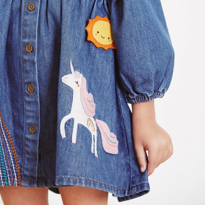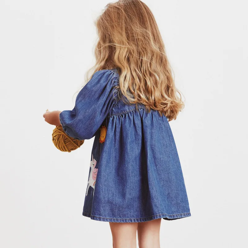 Джинсовое осеннее платье для девочек Little maven, одежда с длинным рукавом и солнцем и единорогом, милая детская одежда для девочек