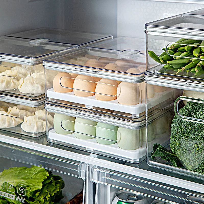 Холодильник для хранения яиц, свежая коробка с крышкой, кухонный держатель для еды, органайзер, контейнер, штабелируемые пельмени, стойка для морозильной камеры, герметичные бункеры