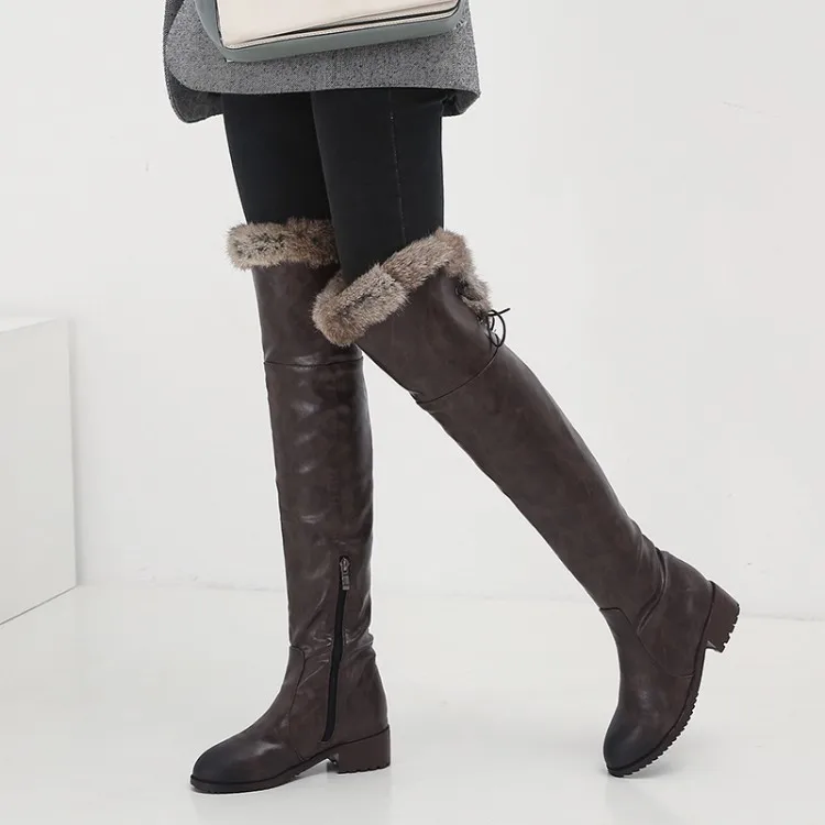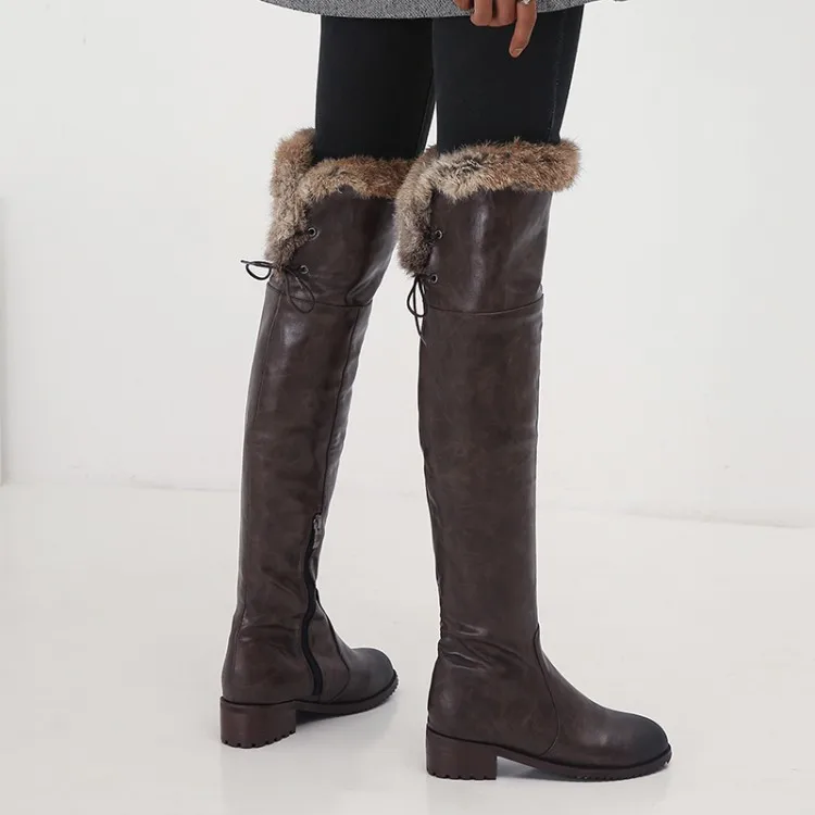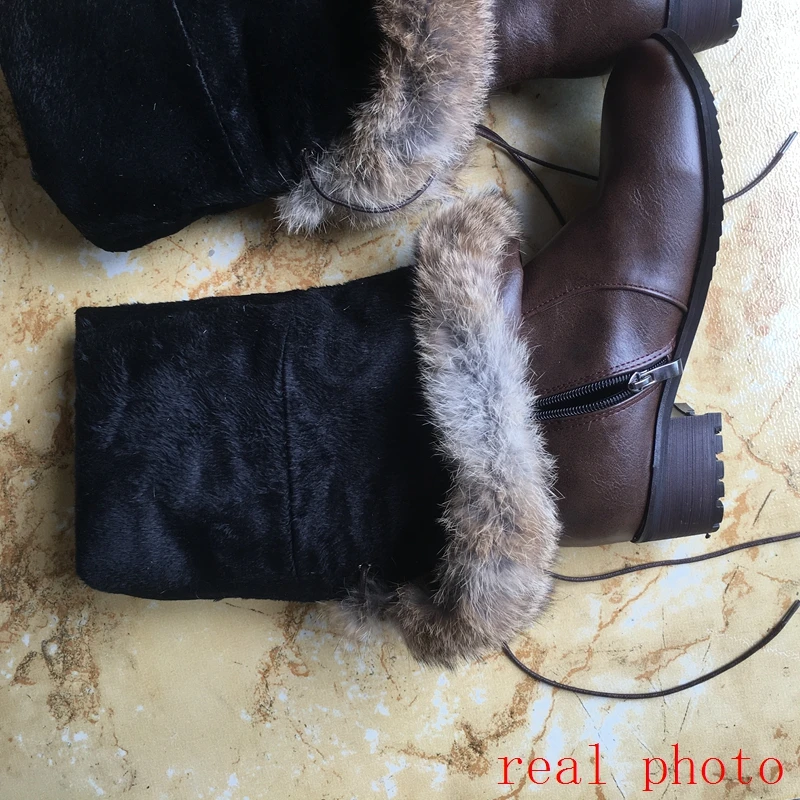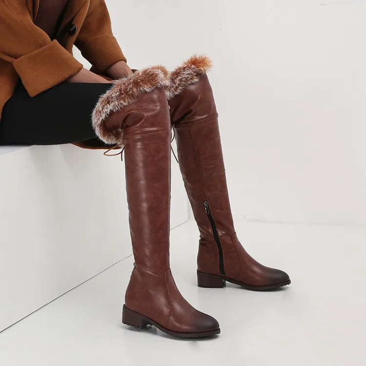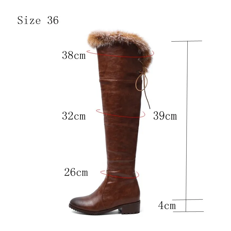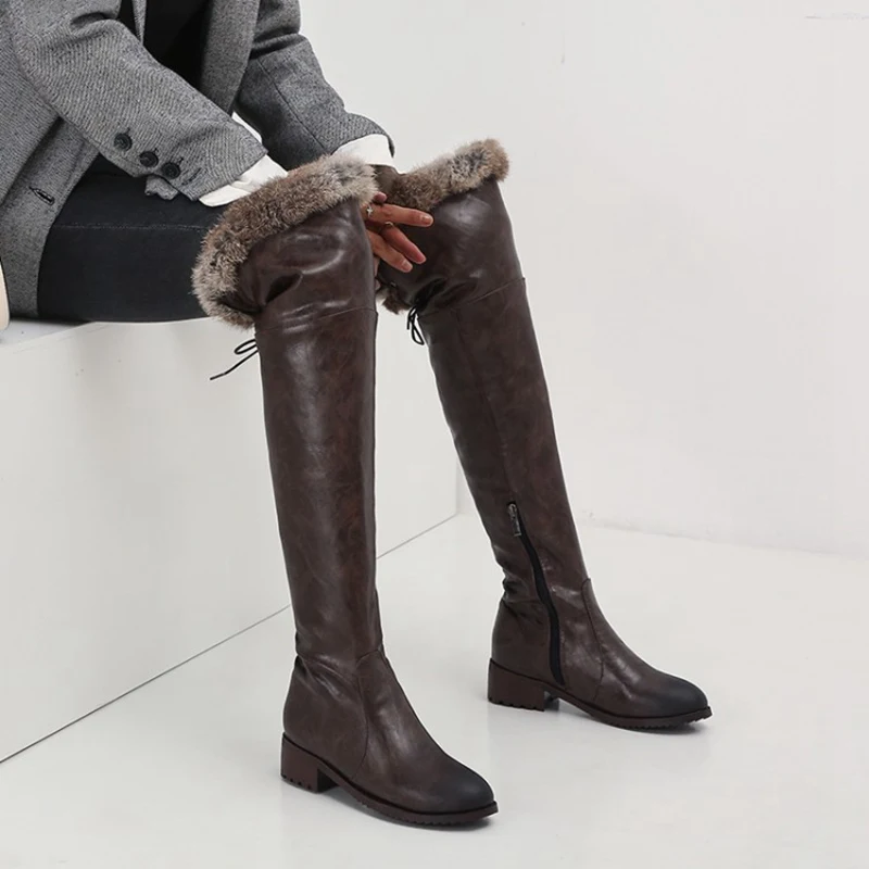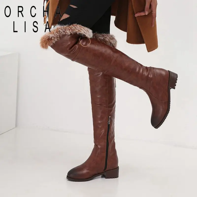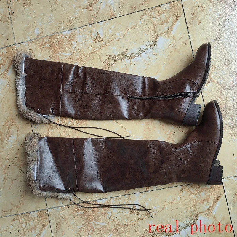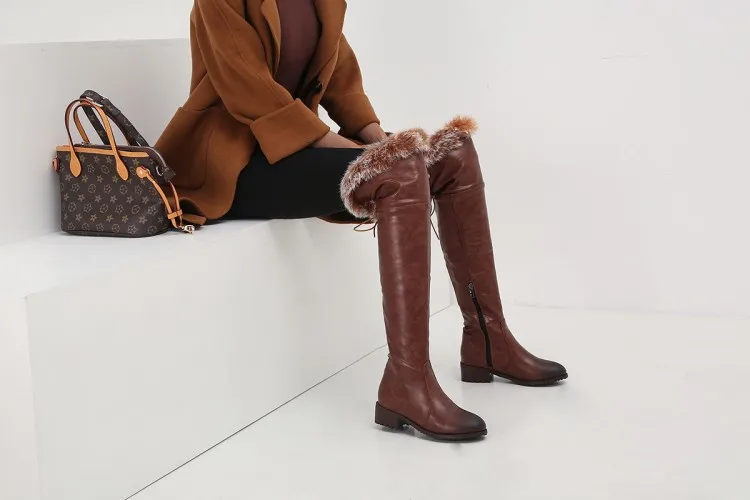 Женские зимние меховые сапоги, кожаные сапоги выше колена на среднем блочном каблуке, большой размер 46, 2021