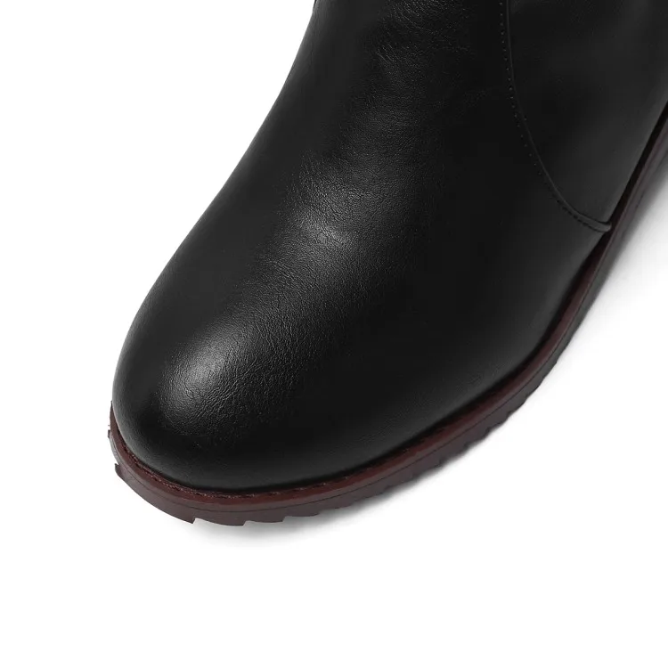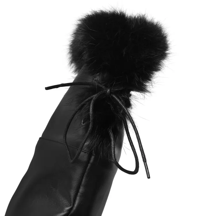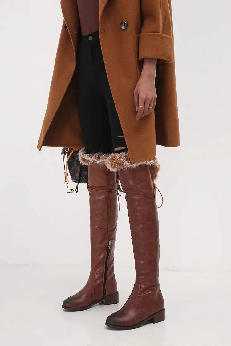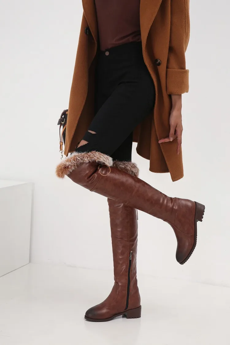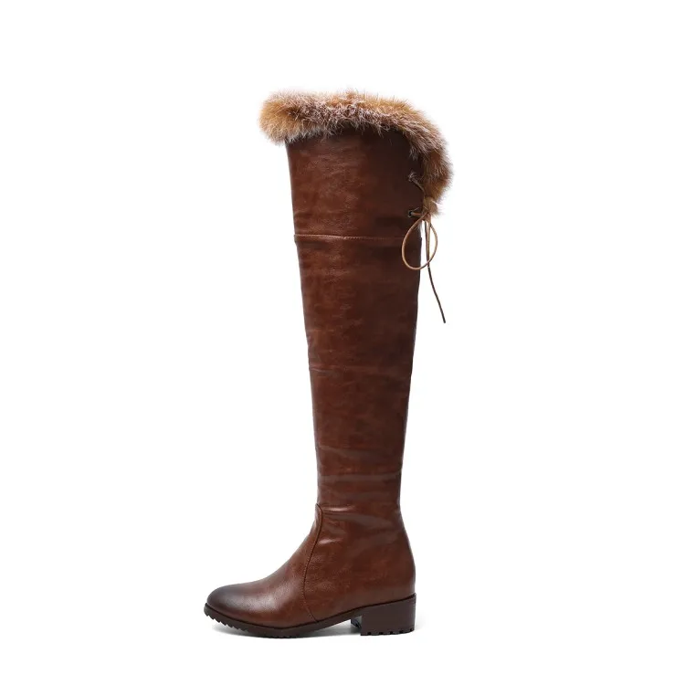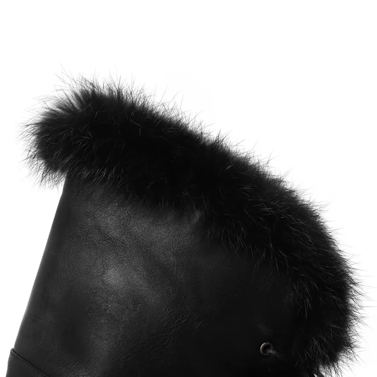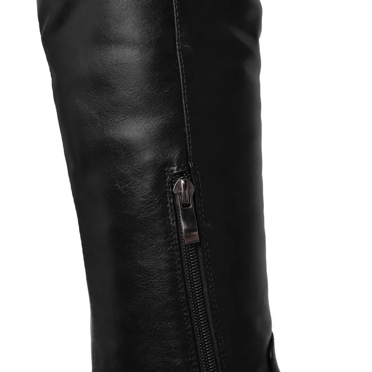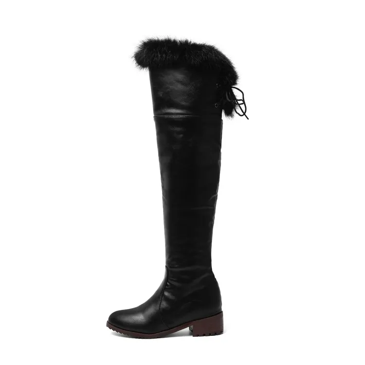Женские зимние меховые сапоги, кожаные сапоги выше колена на среднем блочном каблуке, большой размер 46, 2021
