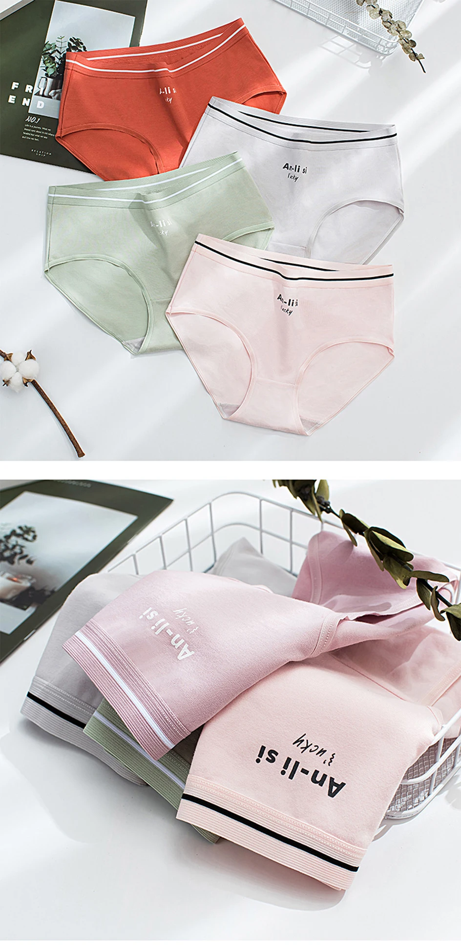 Нижнее белье женское в японском стиле, хлопковые трусы со средней п...