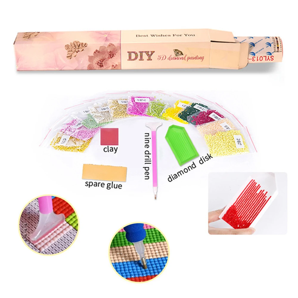 Посылка включает:Полностью сверлильный алмаз, напечатанная ткань, инструменты