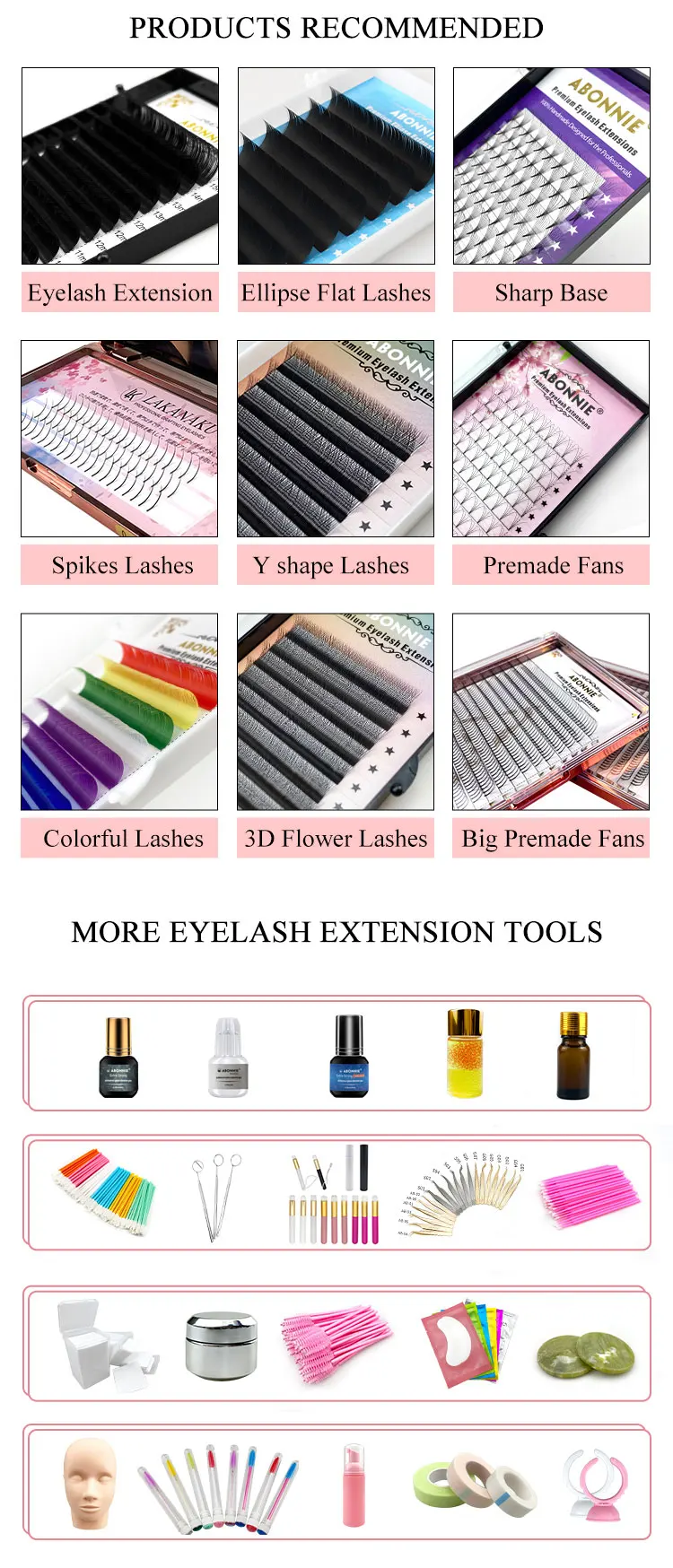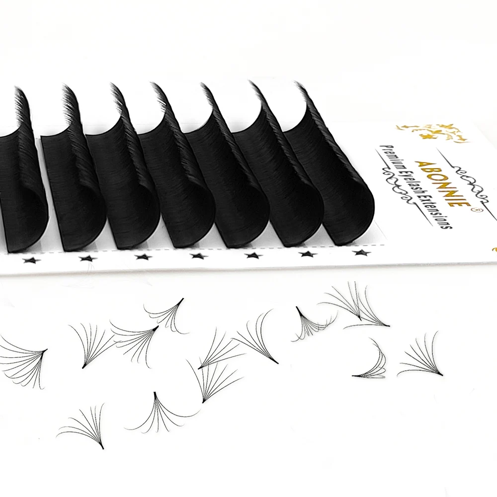 Ресницы для легкого веера могут быть сделаны в 3 d, 4 d, 5 d, 6 d, 7 d, 8 d, 9 d, 10 d, 13 d, 15 d, И больше типов предварительно сделанных ресниц. Название бренда: Abonnie lashes Curl:C/D Толщина: 0,05/0,07 мм Длина: 8-19 мм и смешанный Логотип: Пользовательский логотип Легкие веерные ресницы были расположены в очень специфическом направлении на полосе, когда подобрали пинцет Легкие фанаты дают вам возможность настроить ресницы, которые вы просто не можете получить от pre-mades,