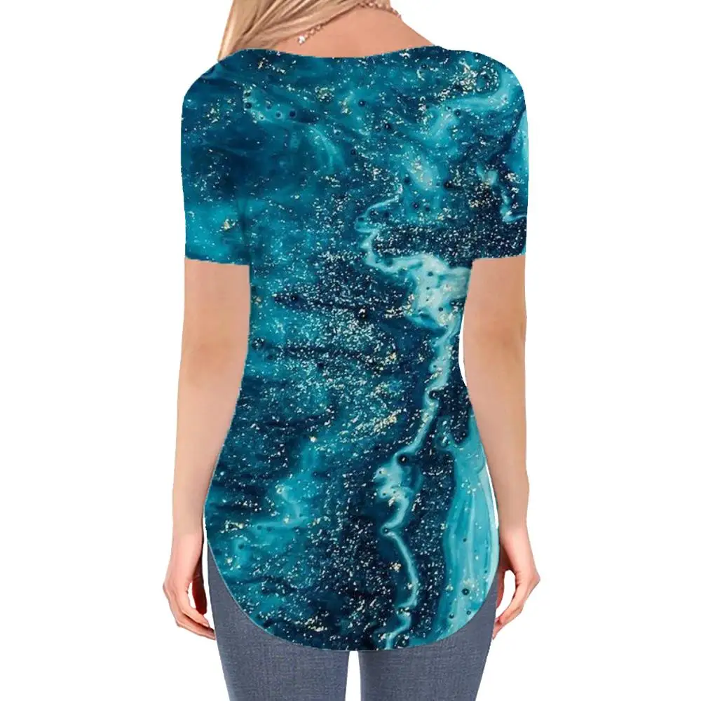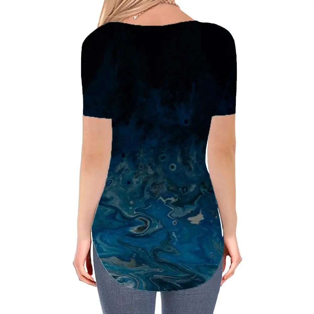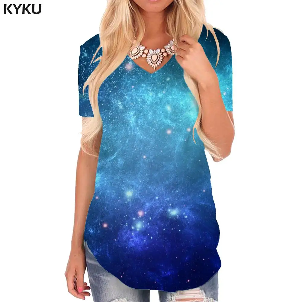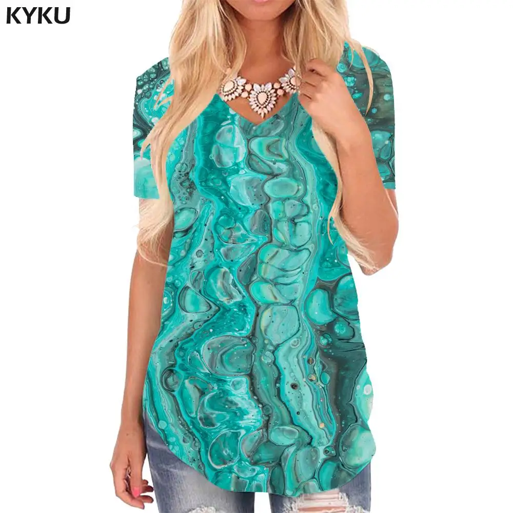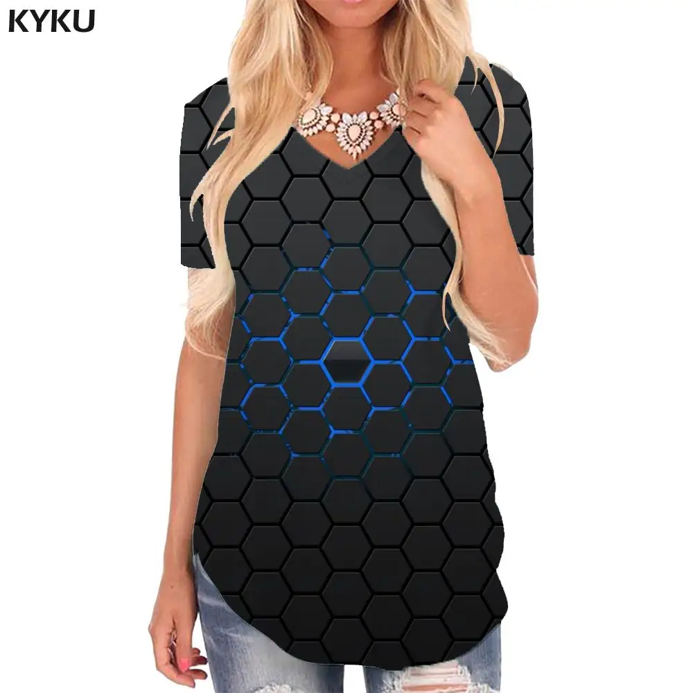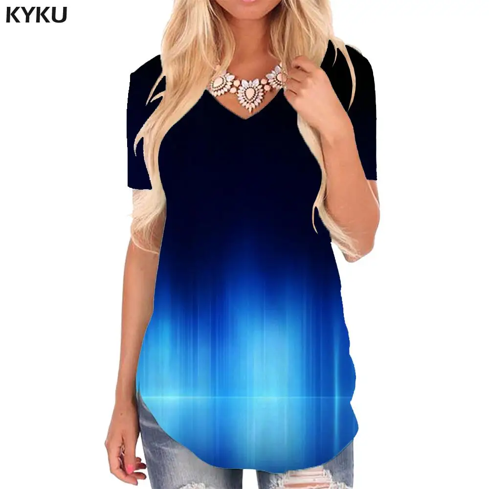 Женская футболка KYKU, летняя футболка с абстрактным рисунком темно-синего цвета
