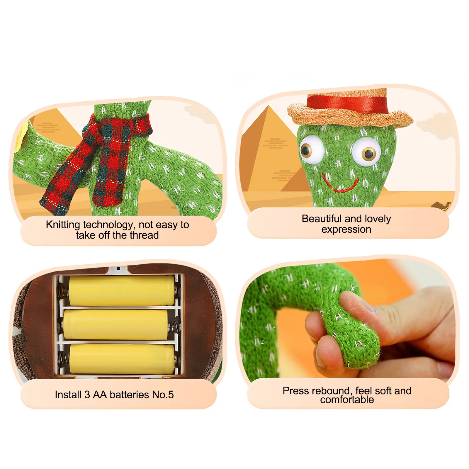7. Безопасный материал:Плюшевая игрушка-кактус изготовлена из мягкого материала, который удобен,Безопасный и нетоксичный. Плюш абсолютно безопасен для детей. Забавный и милыйПлюшевая игрушка кактуса, которая может танцевать, спеть, двигаться и приносить детямСчастливое время.