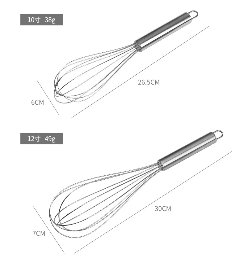 Характеристика:1. Изготовлен из 430 нержавеющей стали, прочный, не легко ржавеет, не окрашивается маслом,Может непосредственно связаться с пищей;2. Встроенная стальная проволока, тонкая работа, даже смешивание, гладкая и не резкая,Чтобы избежать царапин на сосуде во время смешивания;3. Удлиненная противоскользящая ручка, после электролитической обработки,Поверхность гладкая и яркая, удобный захват, легко брать.