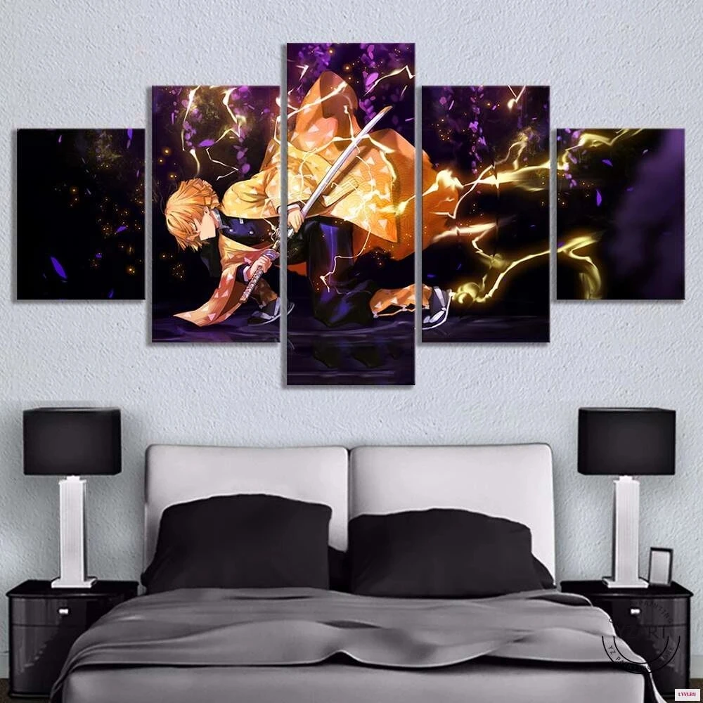 Картина на холсте из 5 предметов аниме плакат Модульная картина истребитель демонов киметсу нет яиба картина на стену для гостиной домашний декор