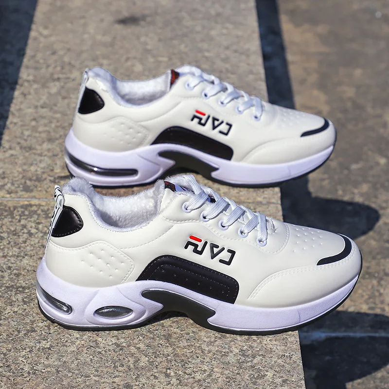 Осенне-зимние новые мужские кожаные кроссовки, модная теплая повседневная обувь, на открытом воздухе, альпинистская, износостойкая обувь для бега, плюс бархатная нескользящая мужская обувь
