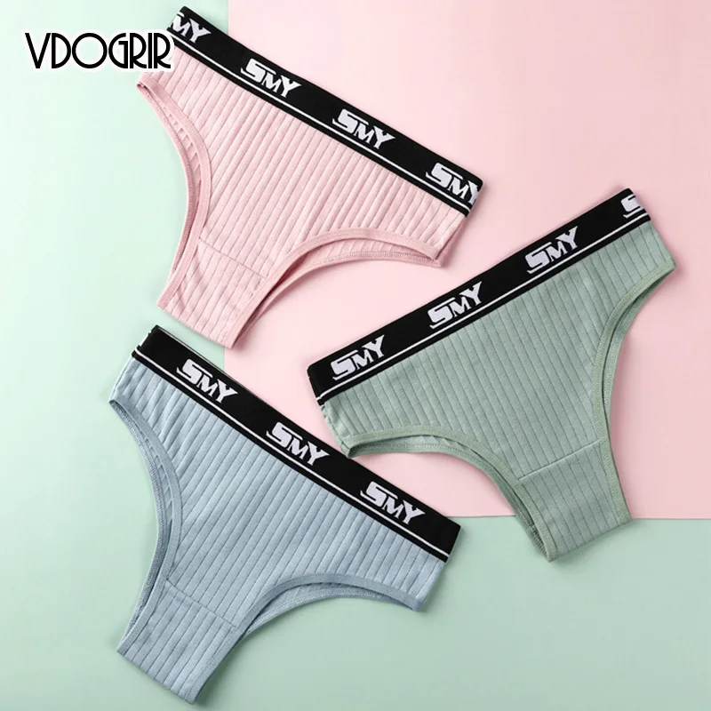 Трусы женские VDOGRIR, бесшовные хлопковые с буквенным принтом, с низкой талией, с Т-образной спинкой, 100%