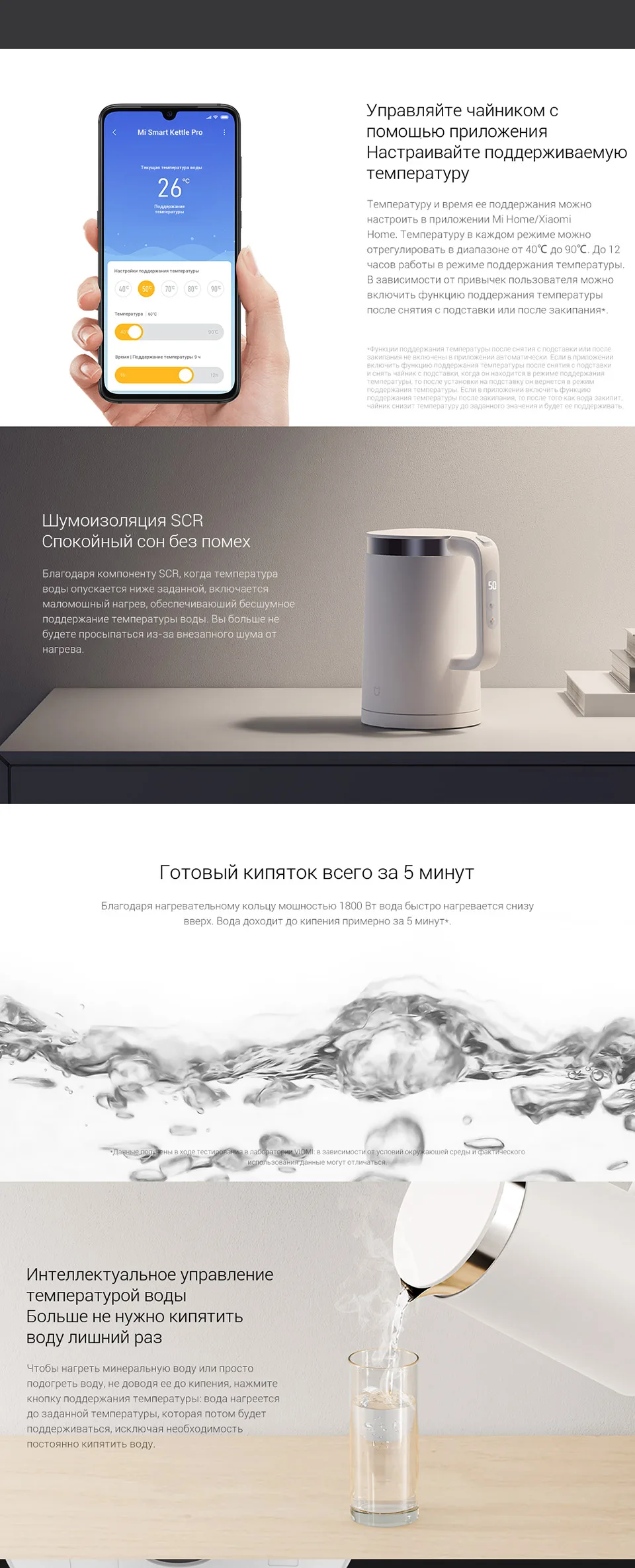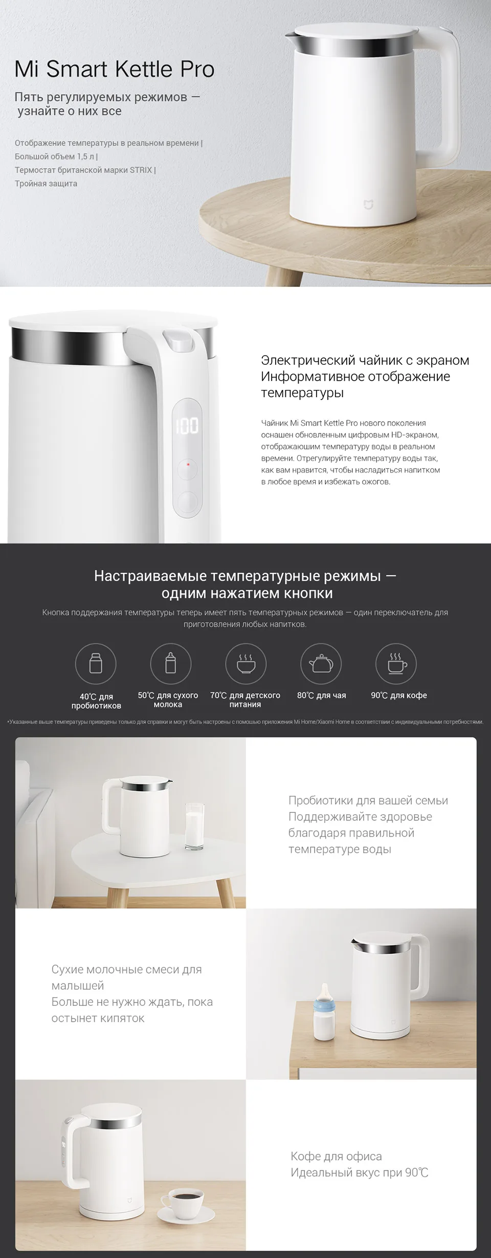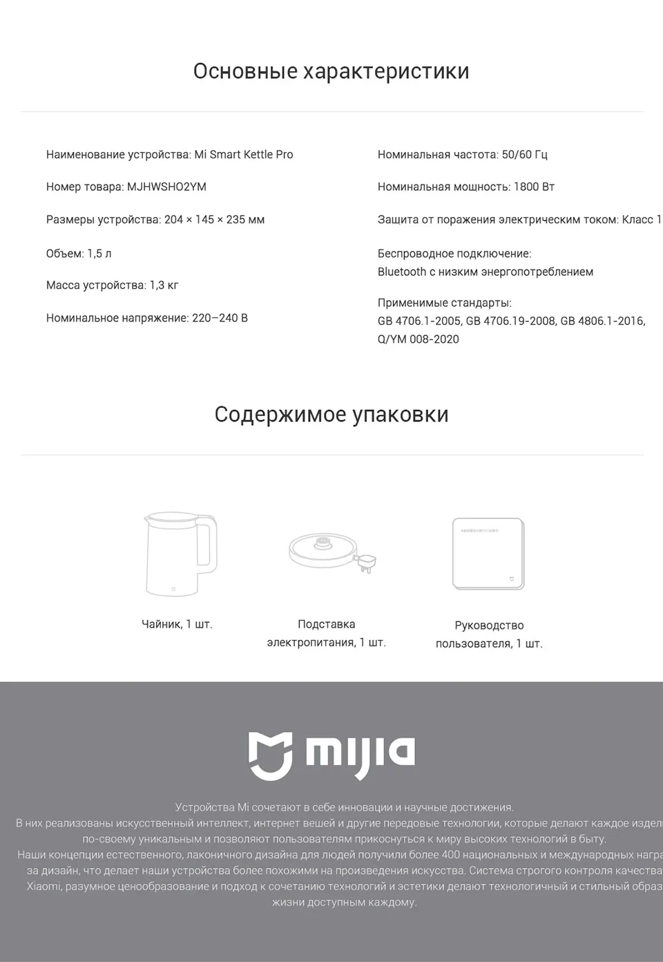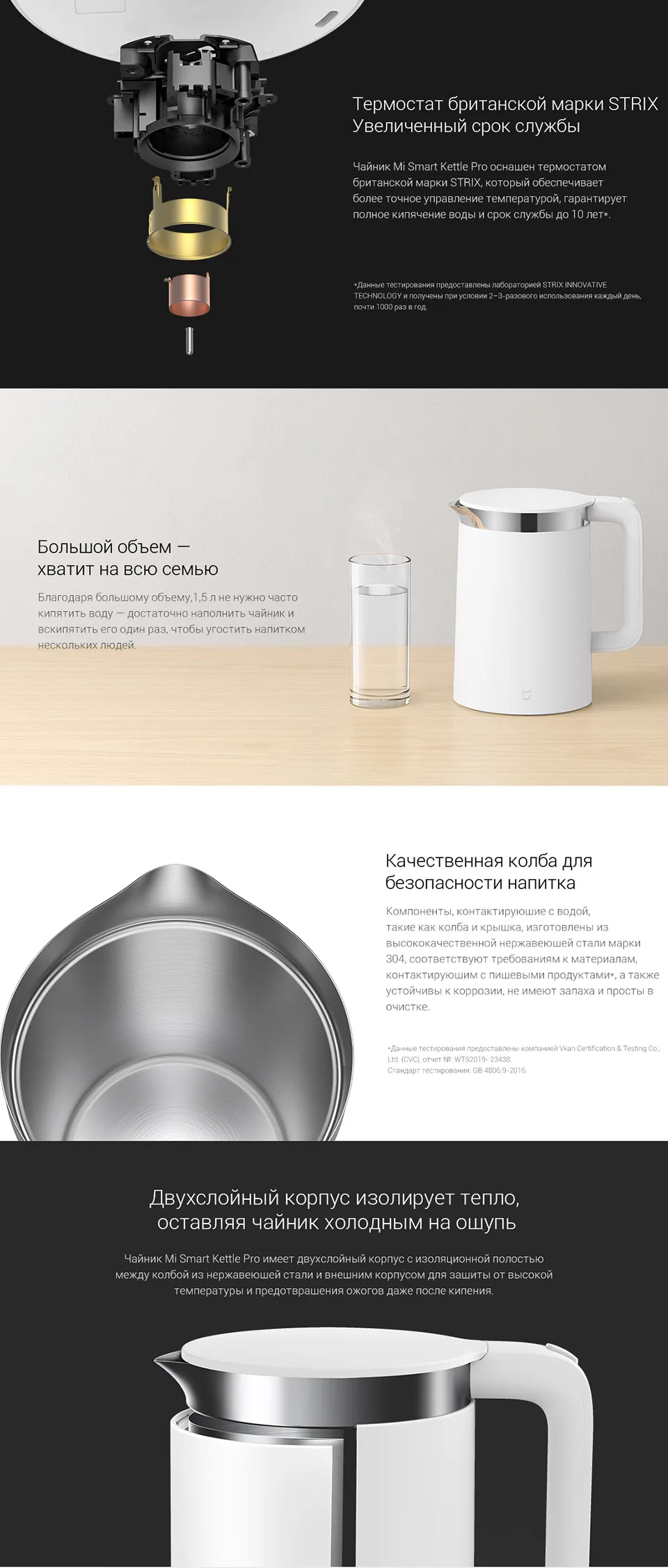 Xiaomi Mi Smart Kettle Pro Чайник Электрический Заварочный Белый Большой Объем 1,5л Термостат Британский Марки STRIX