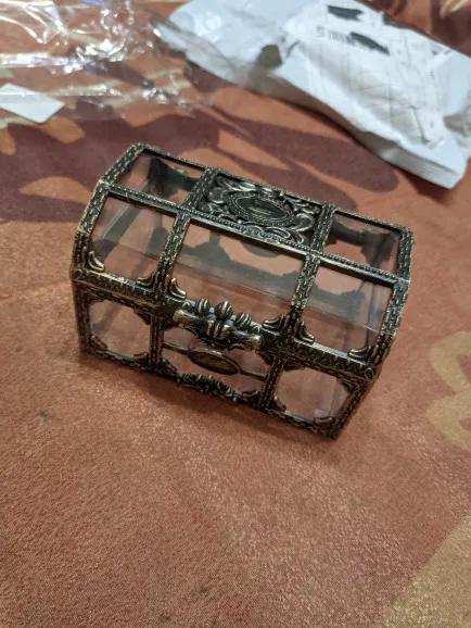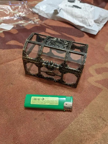 Отличный,миниатюрный сундучок, дошёл целым, товаром доволен!Для пониманимания размеров прикрепил фото-сравнение с зажигалкой) Спасибо продавцу!) Доставка в Москву чуть больше месяца. Excellent, miniature chest, came whole, satisfied with the goods! To understand the size, I attached a photo comparison with a lighter) Thanks to the seller!)