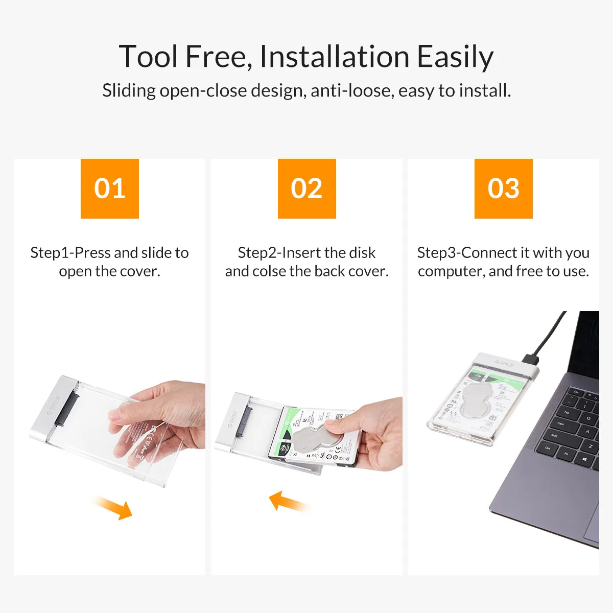Прозрачный корпус ORICO для жесткого диска 2,5 дюйма, USB 3,0, 6 Гбитс, ТБ
