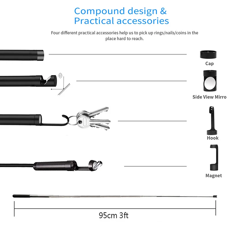 [Интерфейс 3 в 1 и Wi-Fi]: эндоскоп использует интерфейс USB 3 в 1 и дизайн коробки wifi, который имеет большую совместимость и более широкий спектр приложений. Он совместим с телефонами Android с поддержкой OTG, а также с планшетами UVC и Android, ноутбуками Mac Windows и настольными компьютерами.[2.0MP 8 мм]: USB Мобильный эндоскоп с 2 миллионами пикселей и диаметром объектива 8 мм может предоставить четкие изображения и просмотреть все детали. Инспекционная камера USB может снимать живые изображения или видео с высоким разрешением 1280*720.[6 регулируемый светодиодный свет]: эндоскоп камера имеет 6 Регулируемых светодиодов, которые могут легко войти в темных и влажных областях для проверки, а затем отправьте четкое изображение в режиме реального времени, И 2 аксессуары могут уменьшить сложность осмотра.[Водонепроницаемый дизайн]: эндоскоп для камеры Android и USB кабель для эндоскопа с светильник класс водонепроницаемости IP67. Безопасное извлечение воды расширяет область применения эндоскопов, таких как проверка кондиционирования воздуха, ремонт сантехники и техническое обслуживание Канализационных труб.[Идеальный инструмент] для системы внутренней оральной камеры, Подводной Камеры, водонепроницаемой микро-камеры, детектора автомобилей, канализационного детектора, поиска и спасения, детектора для совершения правонарушений и персонифицированных действий, арcheological inspection, PCB inspection, здравоохранения, аэрокосмической промышленности, сестринской и тракторной промышленности, бурения нефтяных скважин, строительства и т. Д.