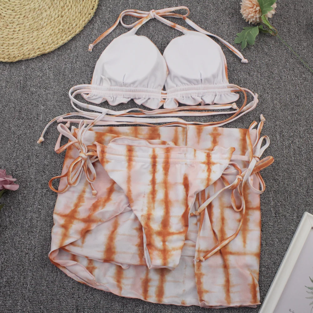 Женский комплект бикини с принтом, купальник из трех предметов, бюс...