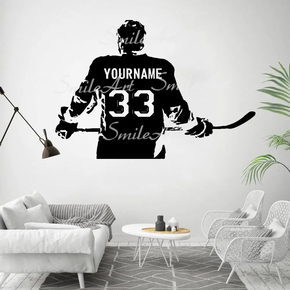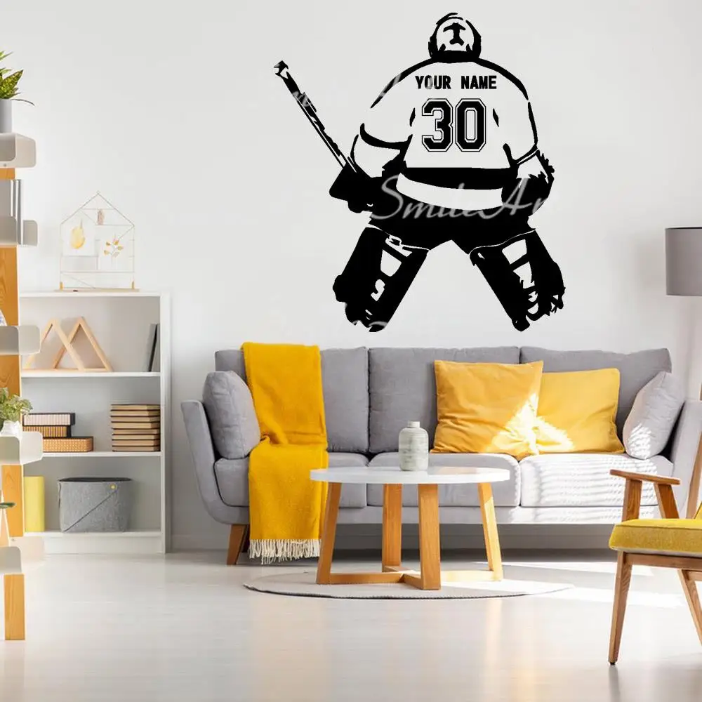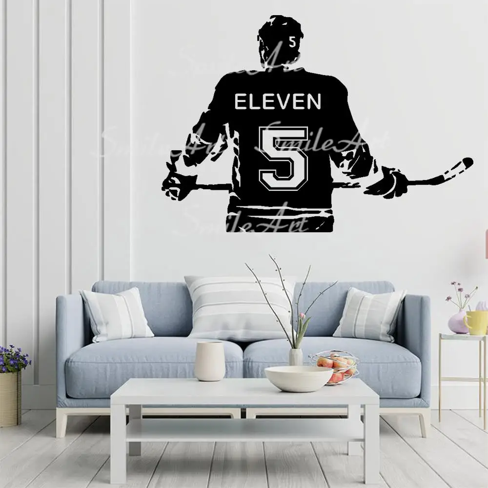 Мультяшный стиль Хоккей с именем на заказ домашний декор настенные наклейки для фотографий декор настенные наклейки