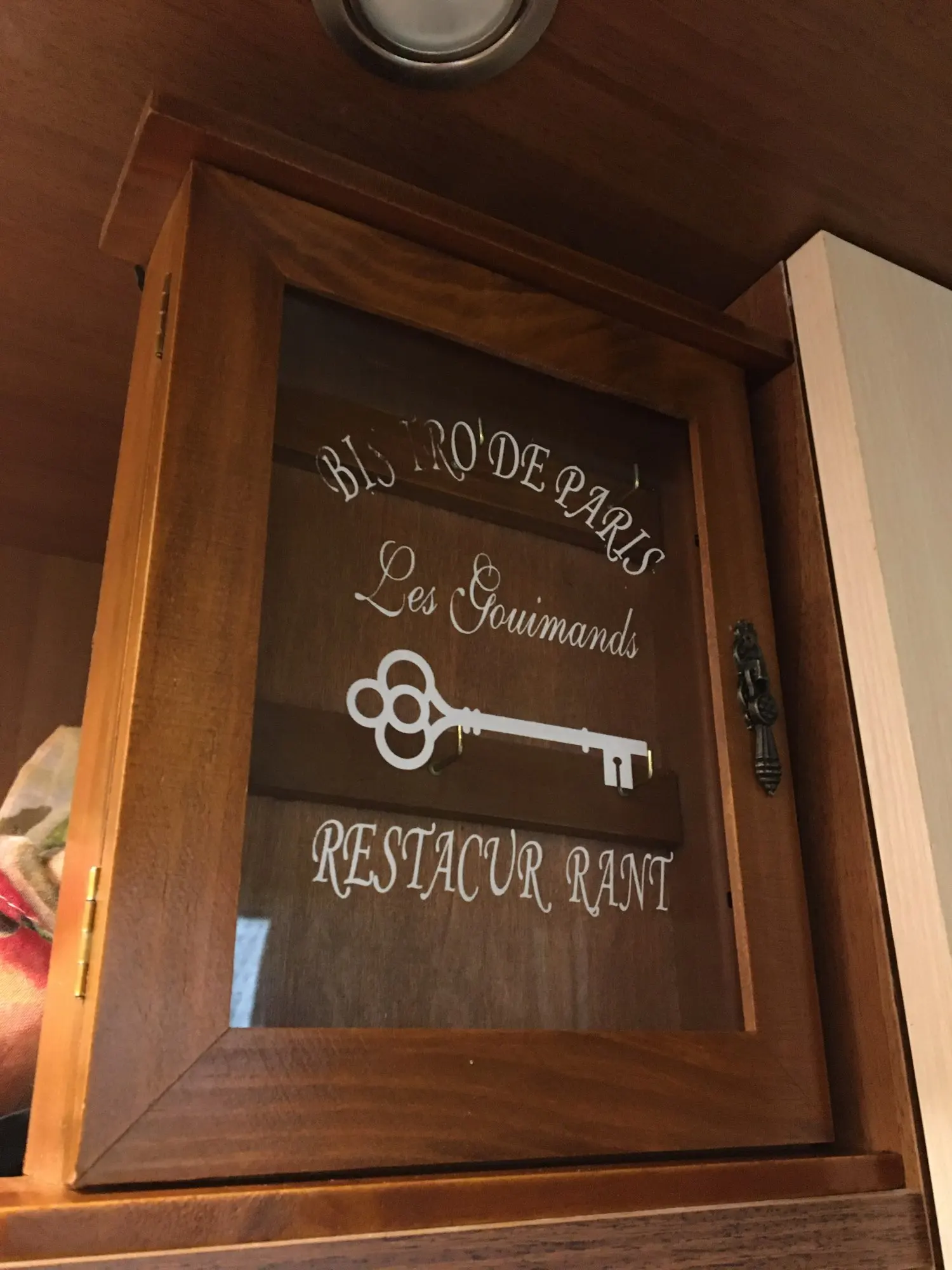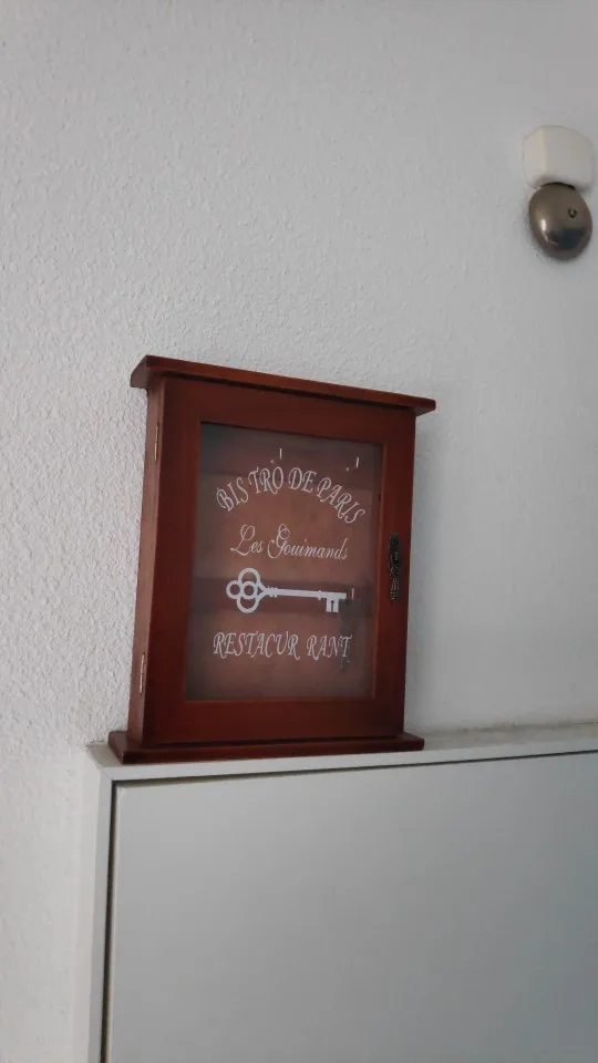 Винтажный Европейский стиль деревянный шкаф с ключом.Маленький и легкий, занимает мало места.Настольное украшение или настенная установка для настенного искусства.С 6 крючками, идеально подходит для сбора ключей и хранения мелочей.Размер: 21x6x25 см.