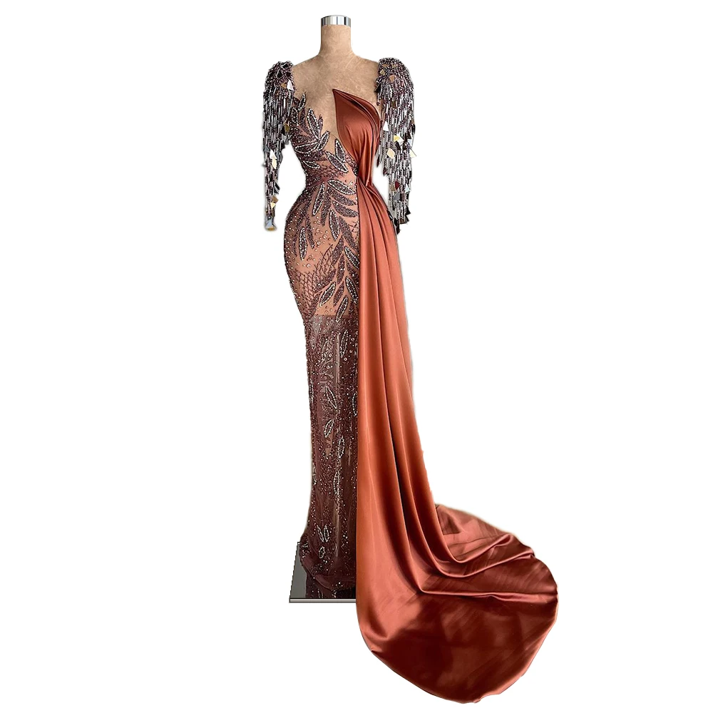 С длинным рукавом Женские вечерние платья со шлейфом одежда Знамени...