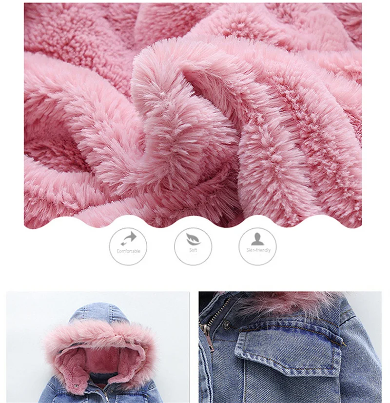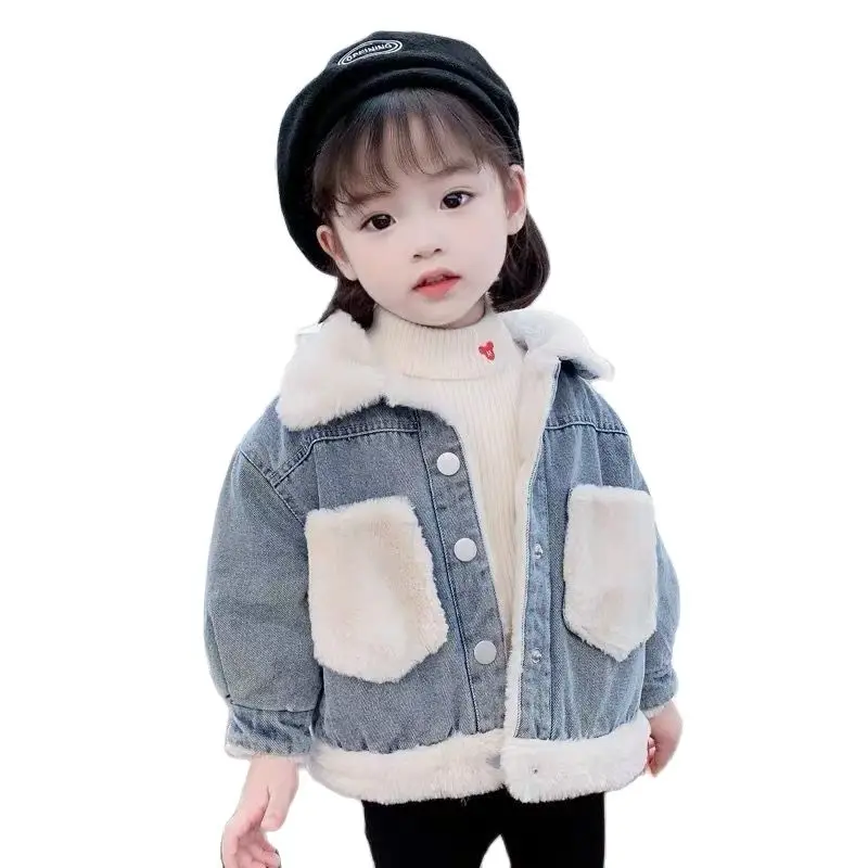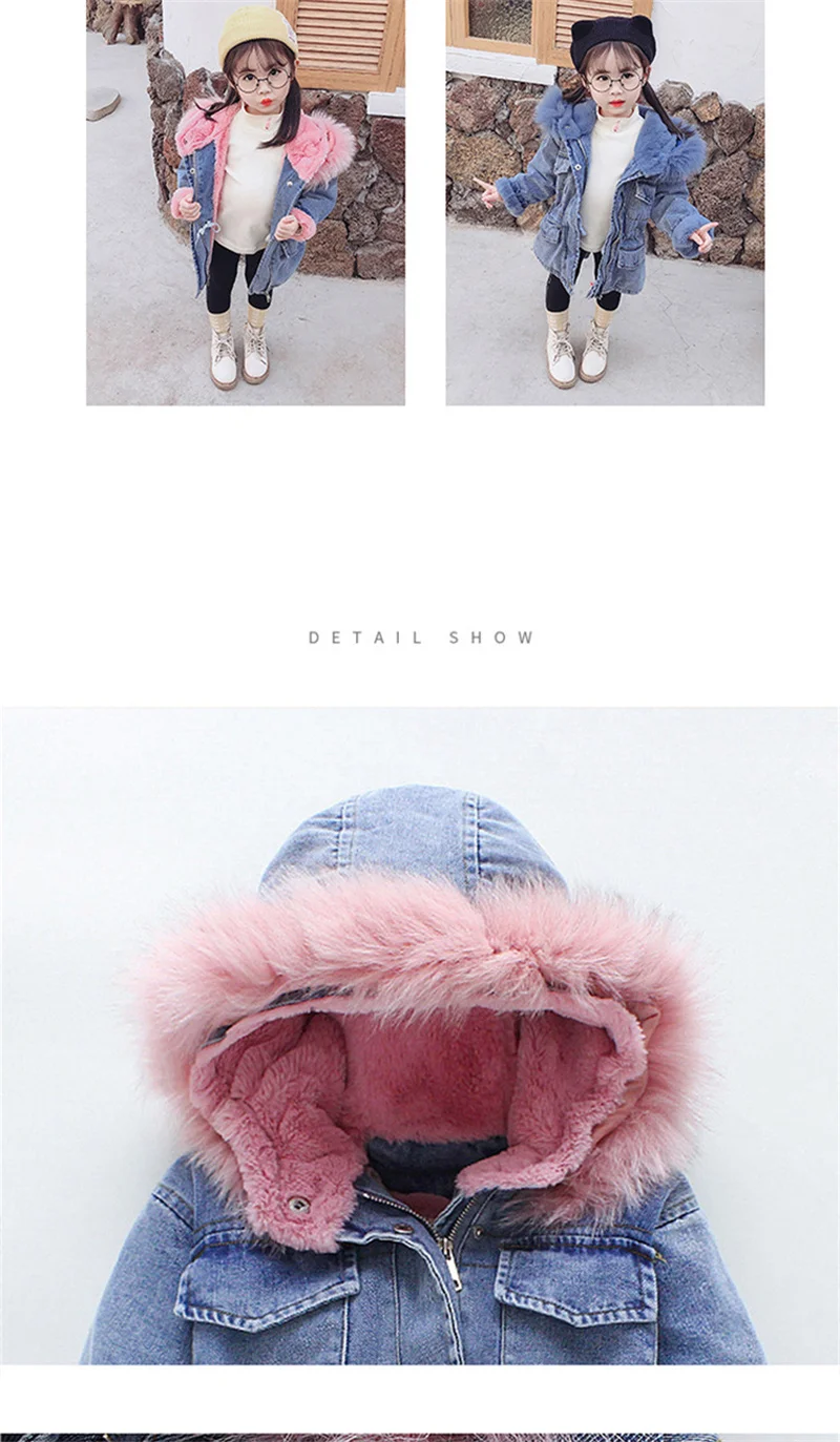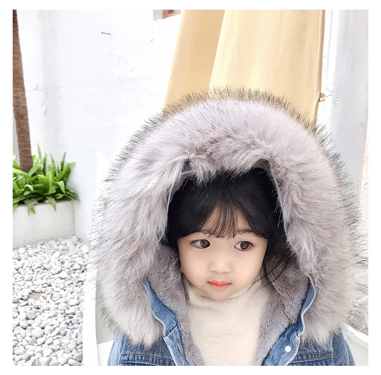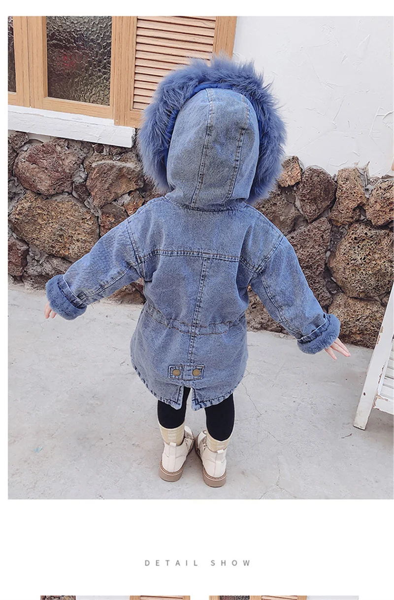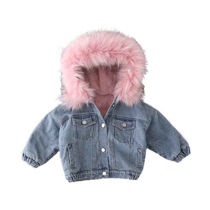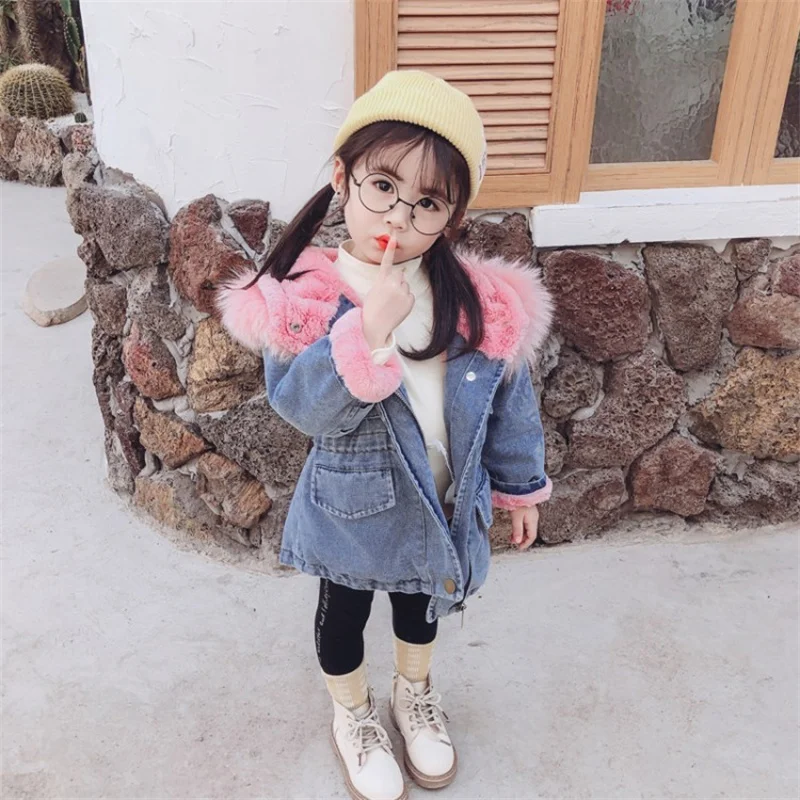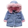 Новые зимние джинсовые куртки для девочек, хлопковое пальто Новинка 2021 года, модное утепленное пальто принцессы с капюшоном, детское джинсовое пальто для маленьких девочек