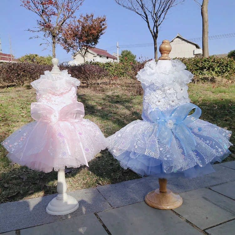 Роскошное платье принцессы для милого питомца, щенка, светло-голубого и розового цвета, свадебные платья-пачки для маленьких собак, одежда для домашних животных
