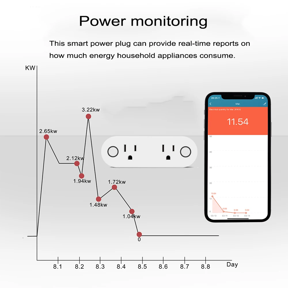 Мини 2-в-1 Smart Plug Wi-Fi розетка США штекер 16A Мощность монитор Функция времени с Tuya Smart Life APP Alexa и Google Assistant