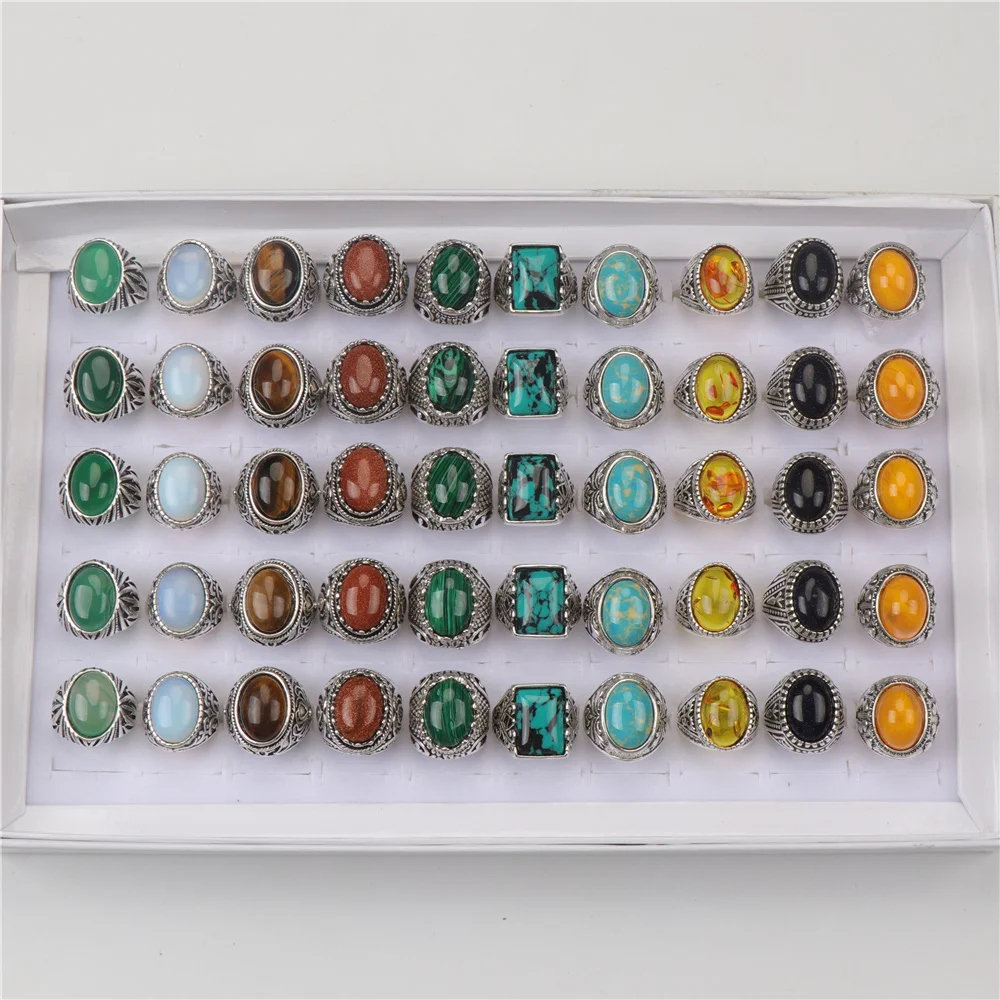 20 шт.лот Мужские Винтажные разноцветные смешанные натуральные камни агат Малахит Тигр серебряные кольца для женщин модные ювелирные изделия для вечеринки