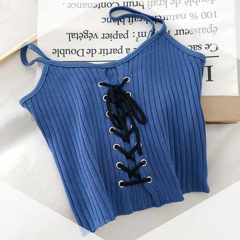 Майка женская трикотажная на тонких бретельках, однотонный пикантный кроп-топ с перекрестными завязками, Y2K, летний топ, y2k