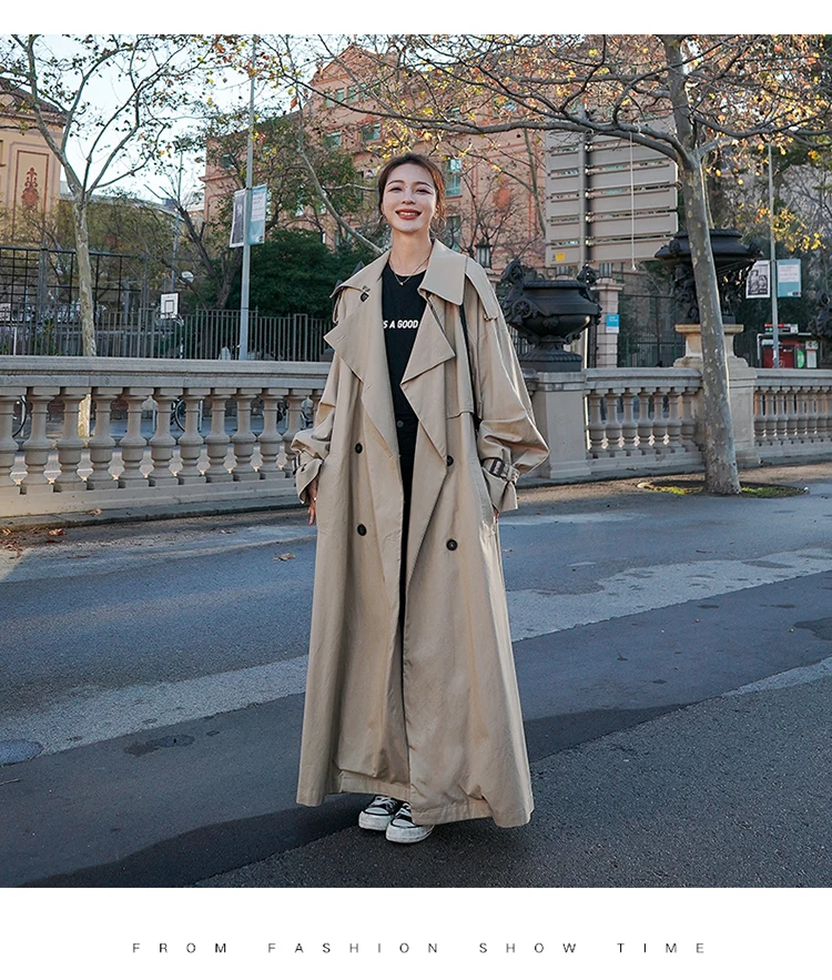 Женский двубортный плащ с поясом, Свободное длинное пальто большого...