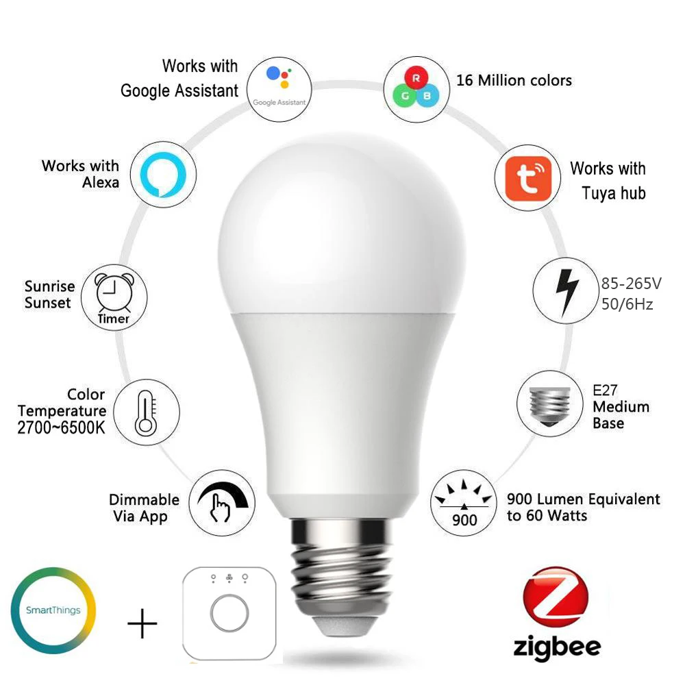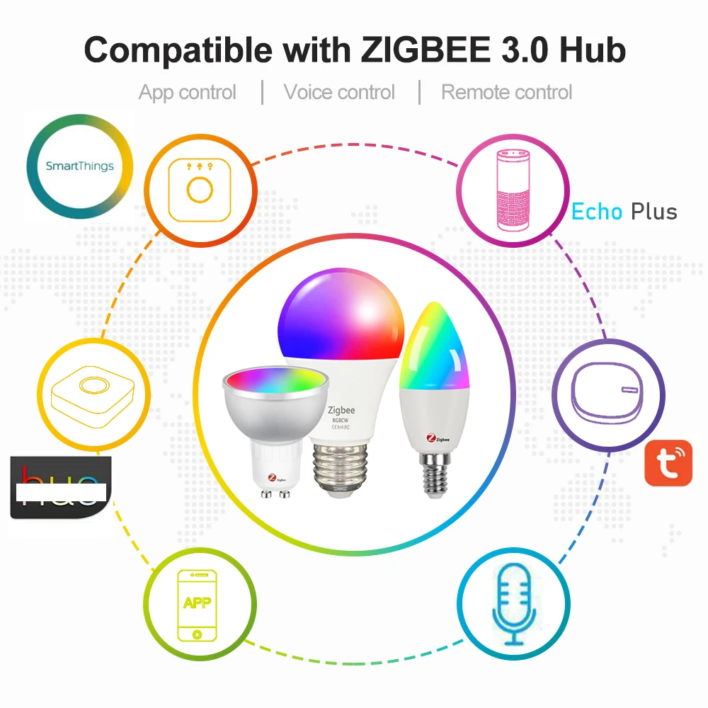 Умная Светодиодная лампа Zigbee 3,0 Tuya GU10 E27 E14, лампочка с регулировкой яркости RGBCW, лампочка с регулятором яркости для умных вещей, Alexa Google Home