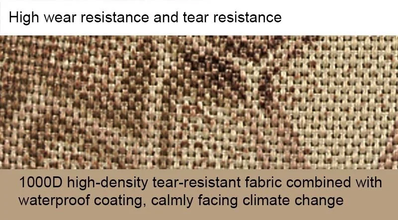 Высокая износостойкость и сопротивление разрыву, 1000D высокая плотность износостойкая ткань в сочетании с водонепроницаемым покрытием, спокойно сталкиваются с изменением климата
