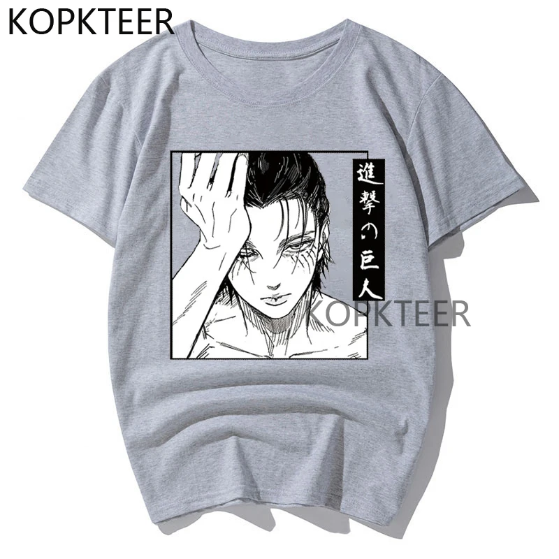 Футболка с забавным аниме атака на Титанов, Эрена джагера, уличная одежда в стиле Харадзюку, летняя рубашка с коротким рукавом, топы