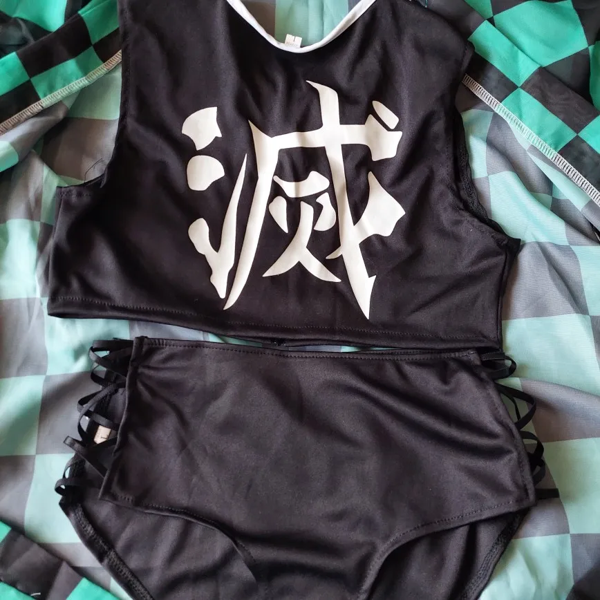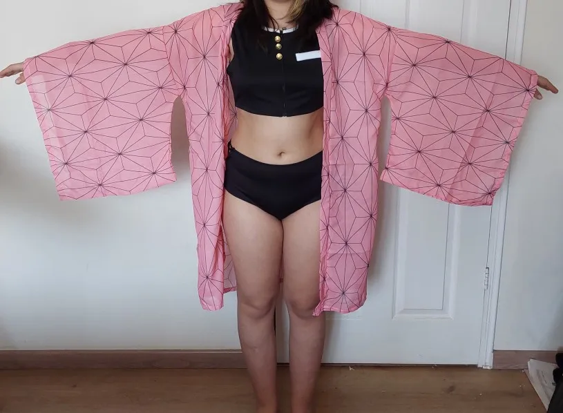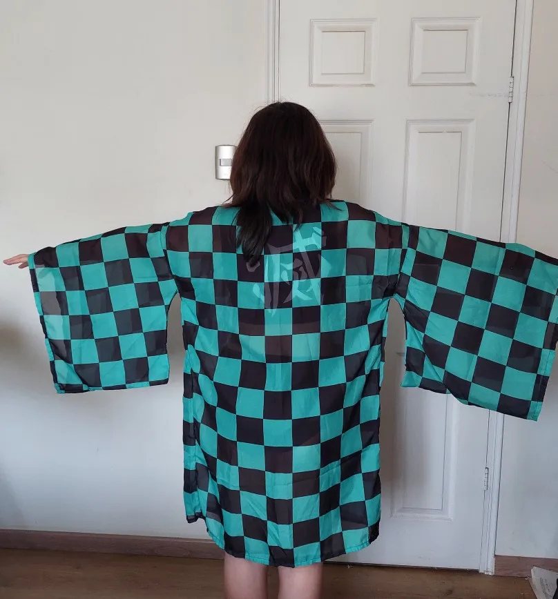 Demon Slayer Аниме Косплей Kimetsu No Yaiba Kamado Tanjirou костюм из двух частей купальник с прозрачным кимоно кардиган костюм на Хэллоуин