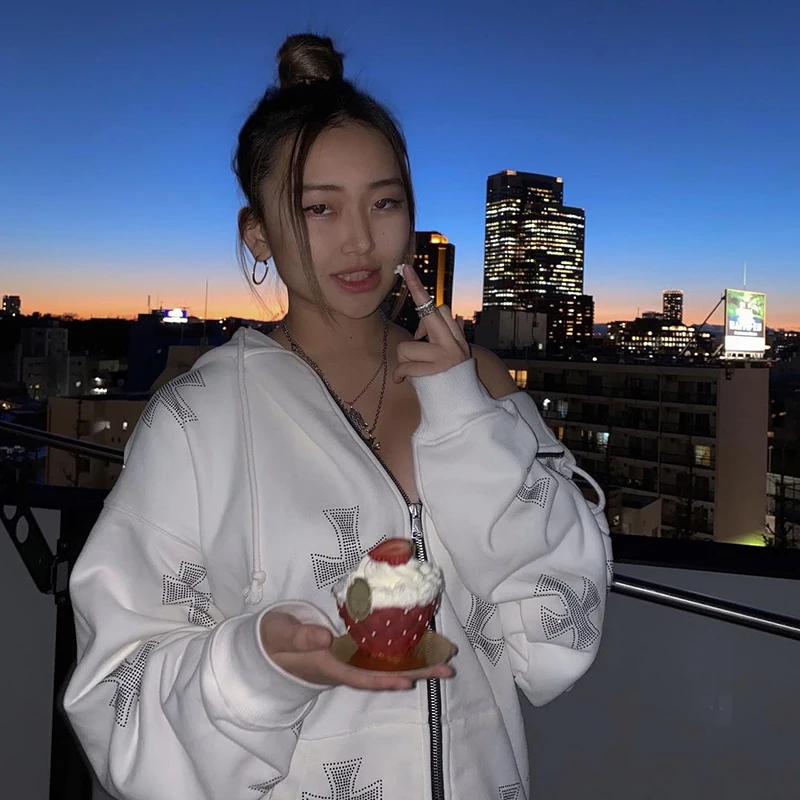 Женский Брючный комплект, черно-белый кардиган, свитер с капюшоном, стразы в американском ретро стиле, y2k