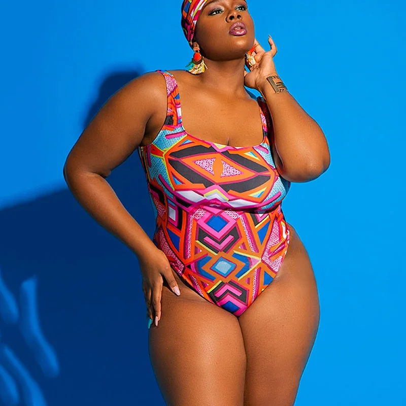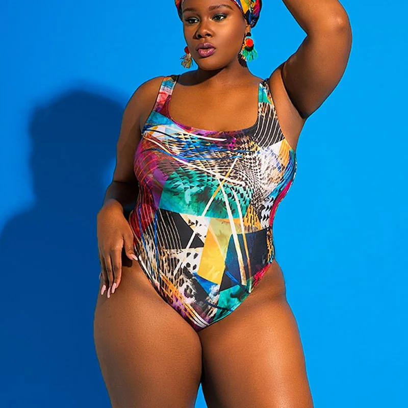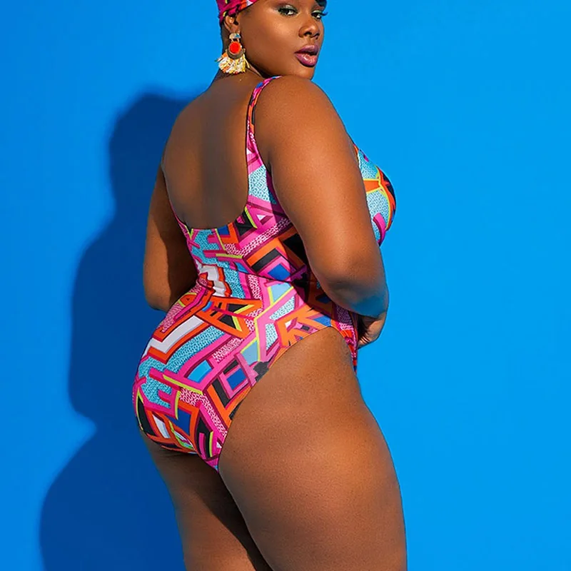 Женский слитный купальник размера плюс, новинка 2021, Размер 4xl, монокини с принтом, бандажный купальный костюм, однотонный сексуальный купальник плюс Xxxl
