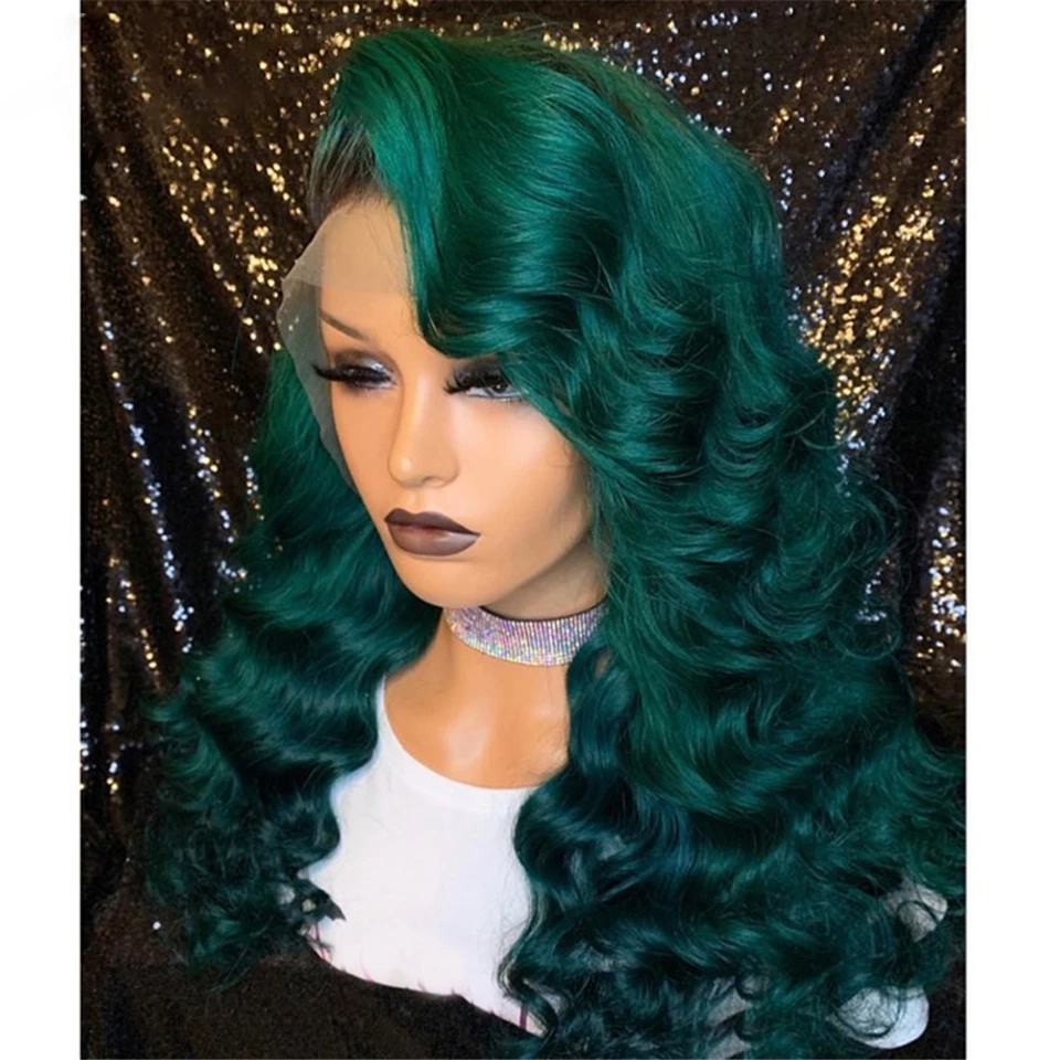 Парики для женщин зеленого цвета, перуанские волосы Remy 13x 4, кружевные передние человеческие волосы, парики, предварительно выщипанные волнистые парики 5,0