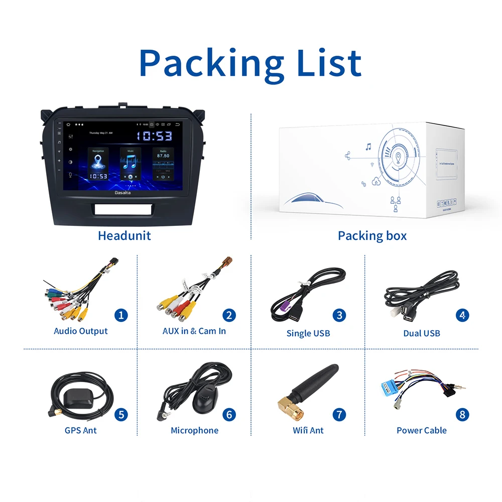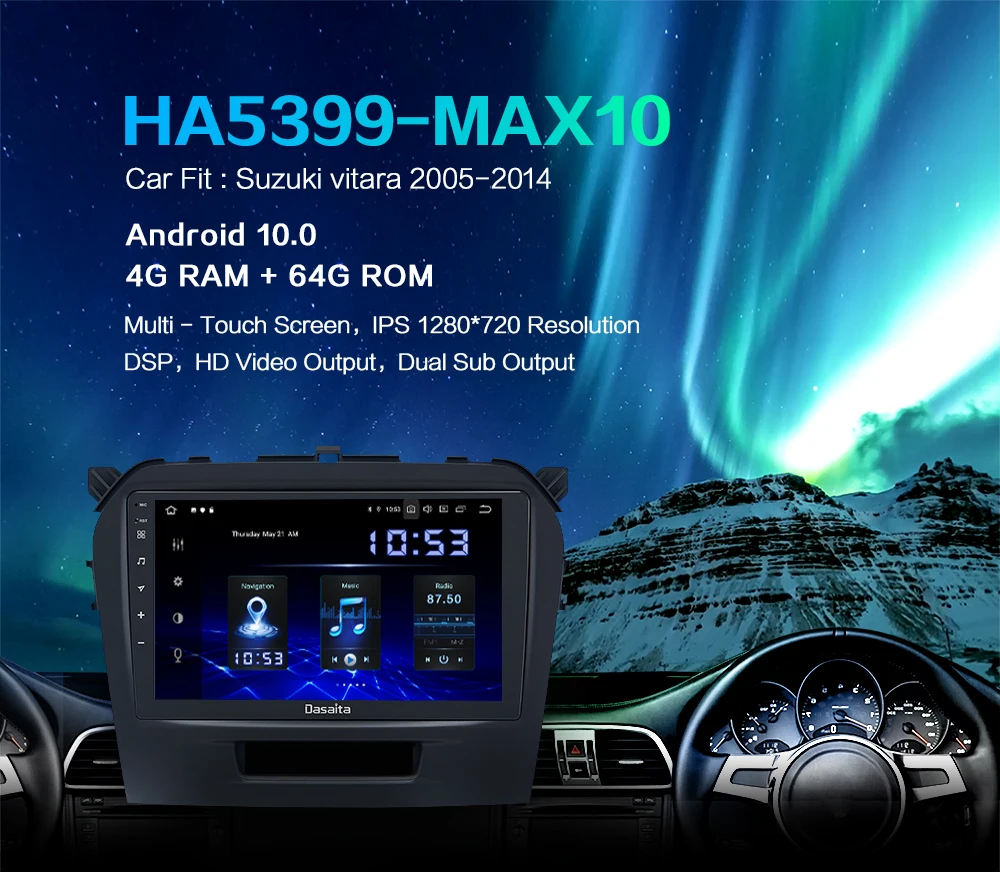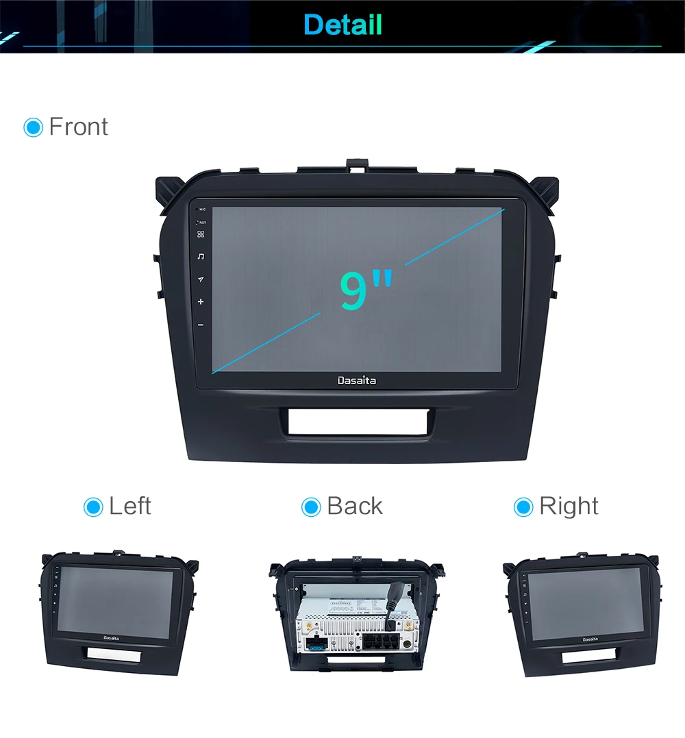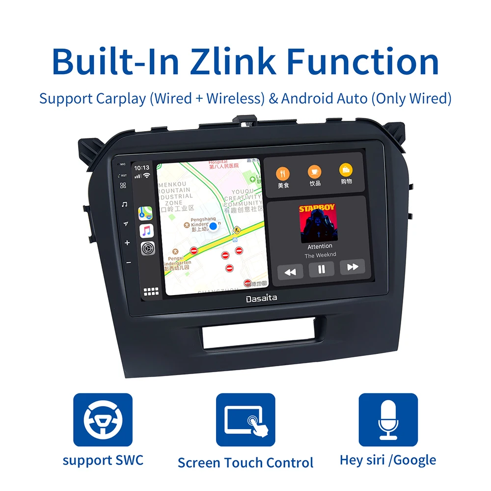 Автомобильный радиоприемник Dasaita, 9 дюймов, Android 10, 1 Din, аудио, стерео, мультимедийный плеер, GPS для Suzuki Vitara 2015-2019, 4 + 64 ГБ, BT 5,0 с Carplay