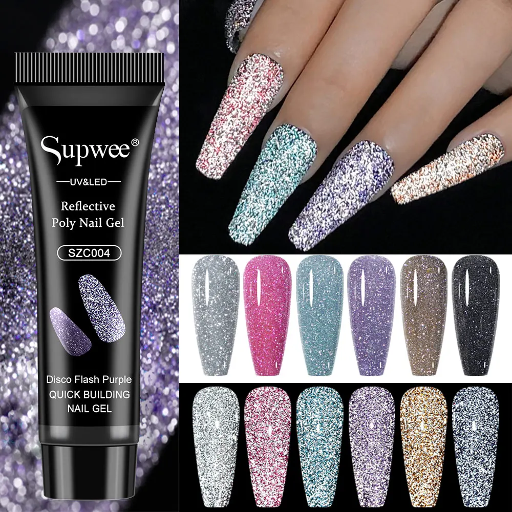 Блестящий полигель для ногтей SUPWEE, 15 г, УФ-гель для наращивания ногтей, Полупостоянный отмачиваемый отражающий Удлинительный гель для дизайна ногтей