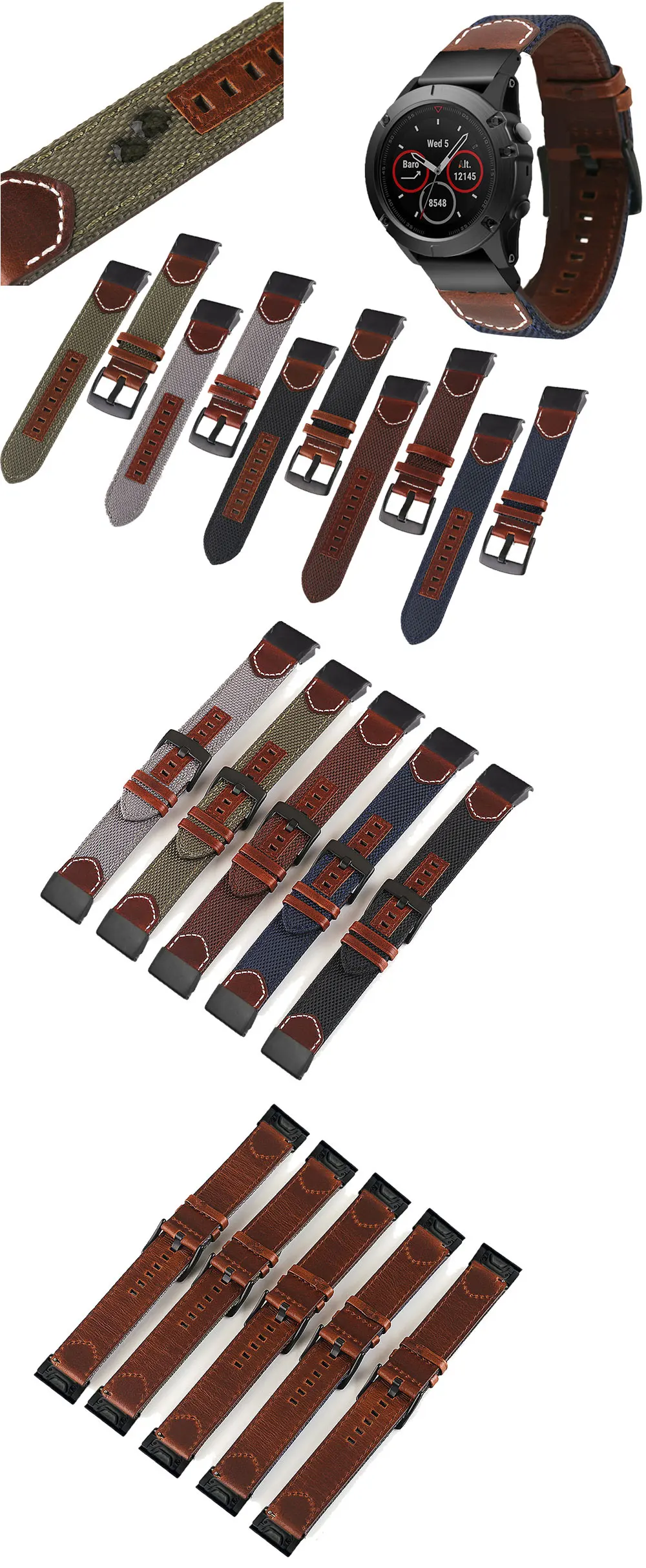 Ремешок кожаный для наручных часов Garmin Fenix 5 Plus 6 Pro 5X 6X ...