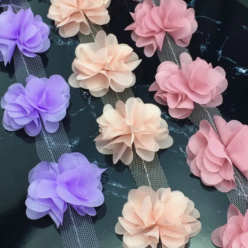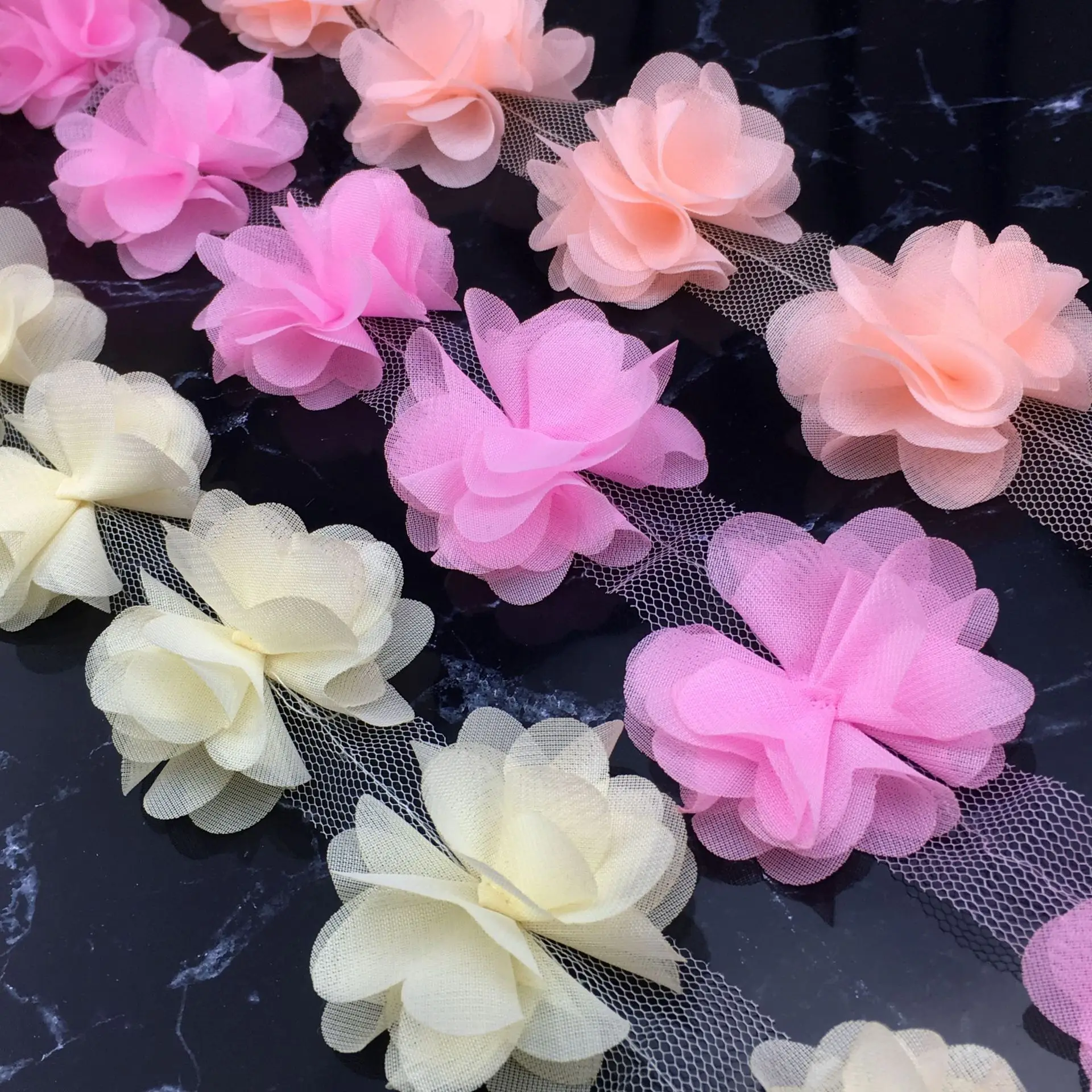 Цветок Шифоновый объемный кружевной, 12 шт., черный, розовый, белый цвет, для украшения шляпы, корсажа, дома, 2021