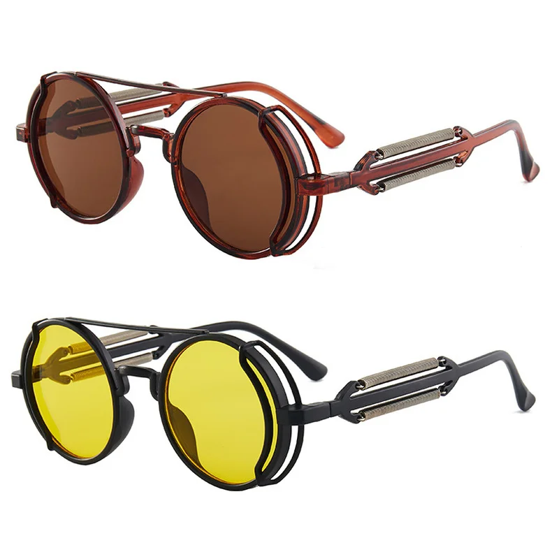 Солнцезащитные очки в стиле стимпанк, модный круглый металлический,...