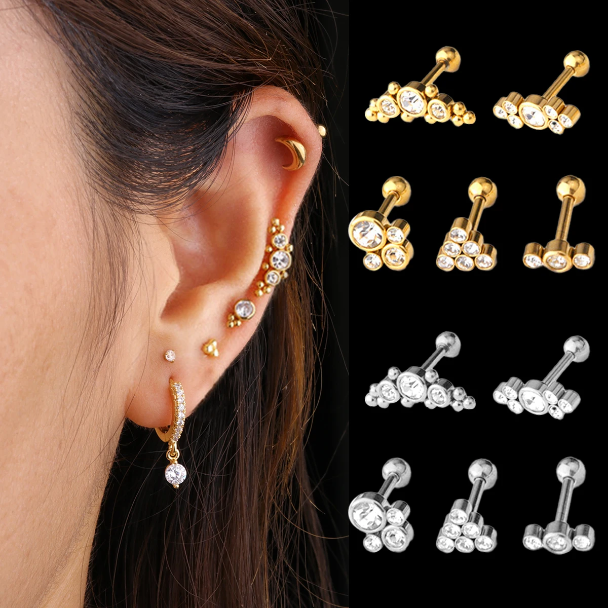 Серьга-гвоздик из нержавеющей стали для пирсинга хрящевой ткани, небольшой геометрический фианит цвета золото и серебро, ювелирное изделие для прокола ушной раковины, козелка и лобы, 1 шт.