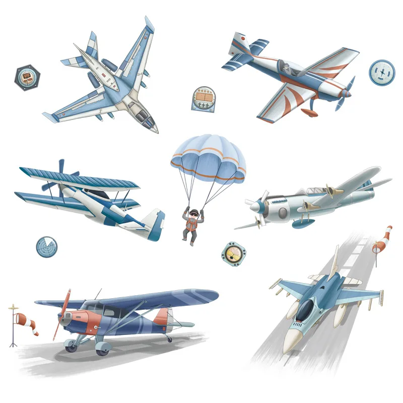 Самоклеящаяся бумажная наклейка на стену для детской комнаты, наклейка-самолет парашют, космонавт, для спальни, механический энтузиаст, декор для комнаты