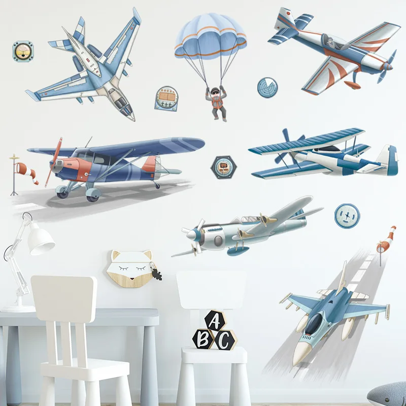 Горячая Распродажа самолет наклейки на стену для мальчиков Спальня ...