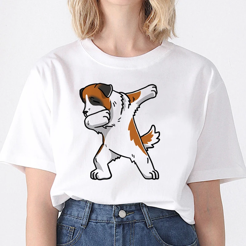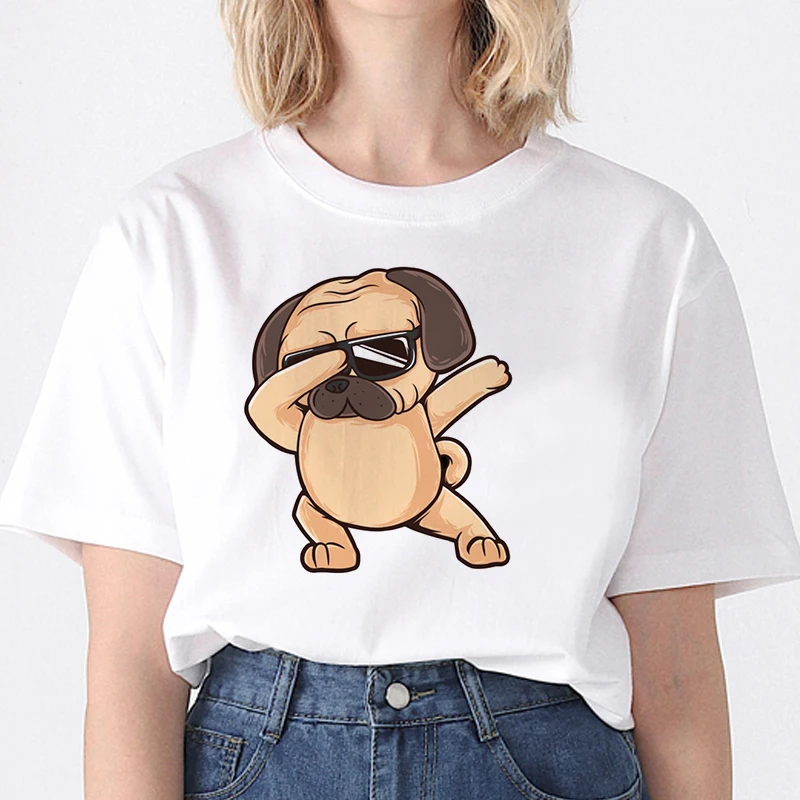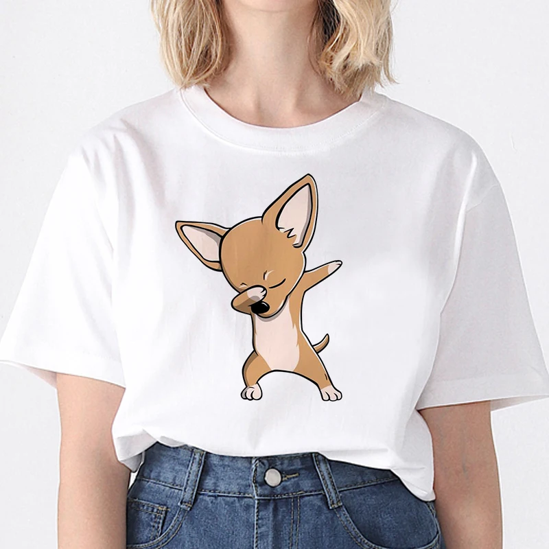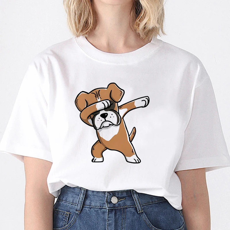 Женские футболки с коротким рукавом с принтом танцующей собаки модные 90s повседневные футболки с круглым вырезом Женская одежда Harajuku футболки